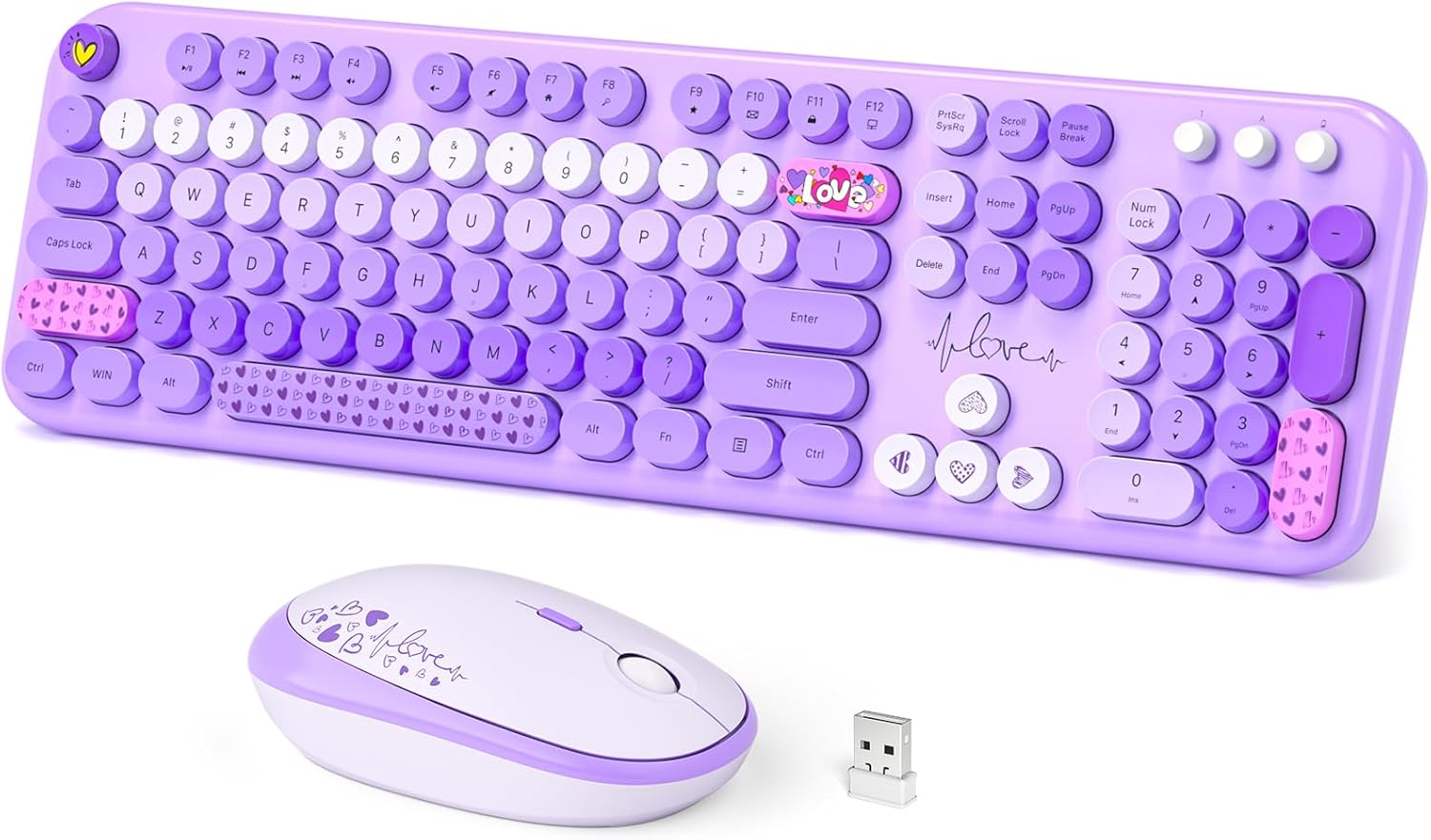 Wireless Keyboard and Mouse Combo, Full Size Retro Keyboard with Number Pad and 2 in 1 USB Connected Mouse for Windows 7/8/10, Laptop, Desktop, PC, Computer (Purple Colorful)