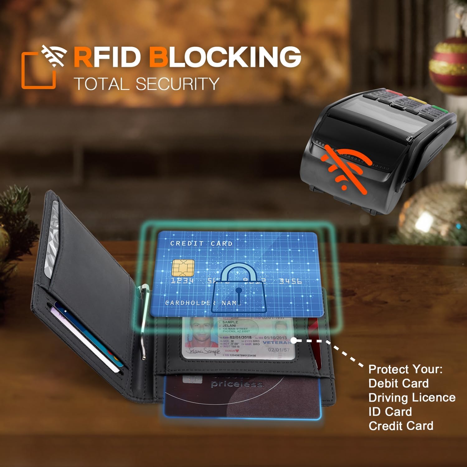 Slim Money Clip Wallets for Men RFID Blocking 11 Card Holder Minimalist Small Thin Carbon Leather Bifold Mens Front Pocket Wallet Gift Box