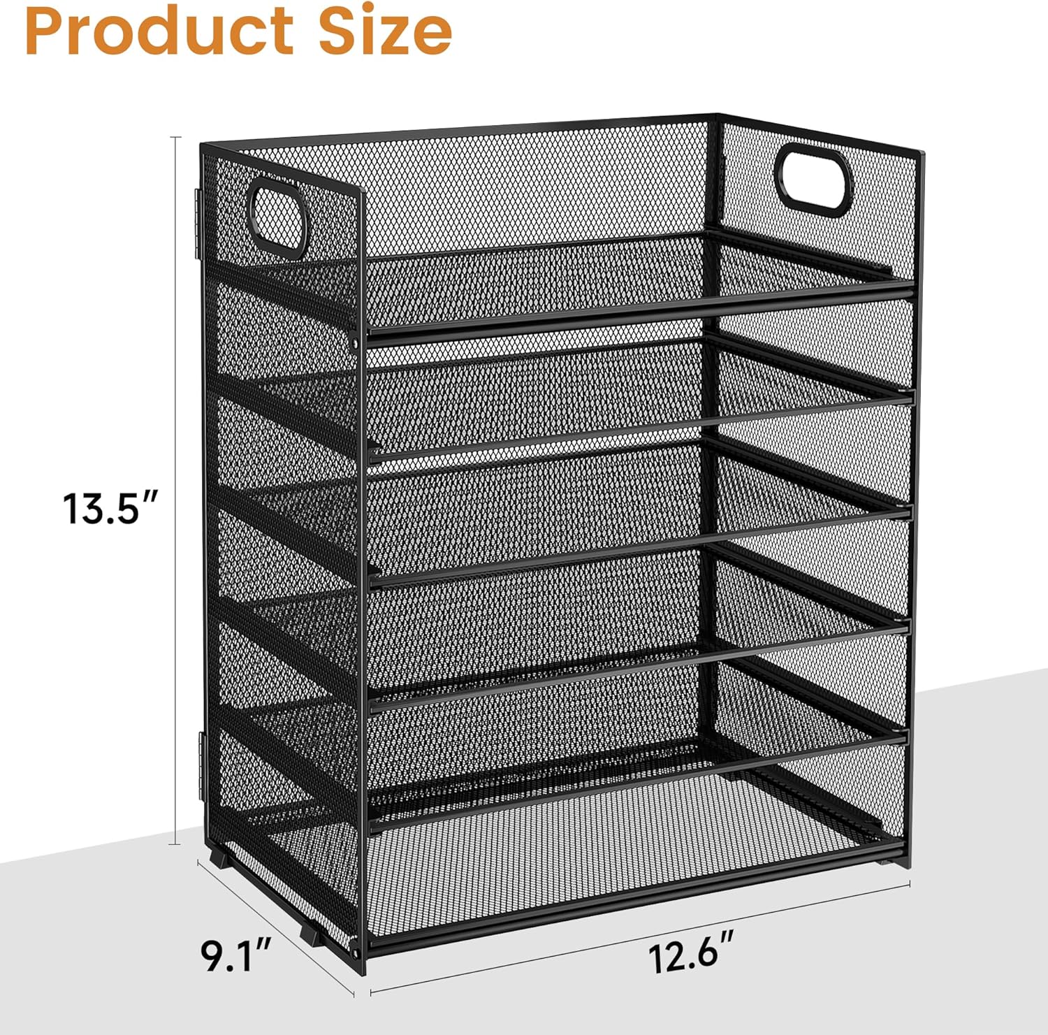 Subekyu 6 Tier Paper File Tray Organizer for Desk, Black Mesh Desk Letter Paper File Folder Accessories Sorter Organizer with Handle, Stackable Slide Tray for Office, Home or School Supplies Storage