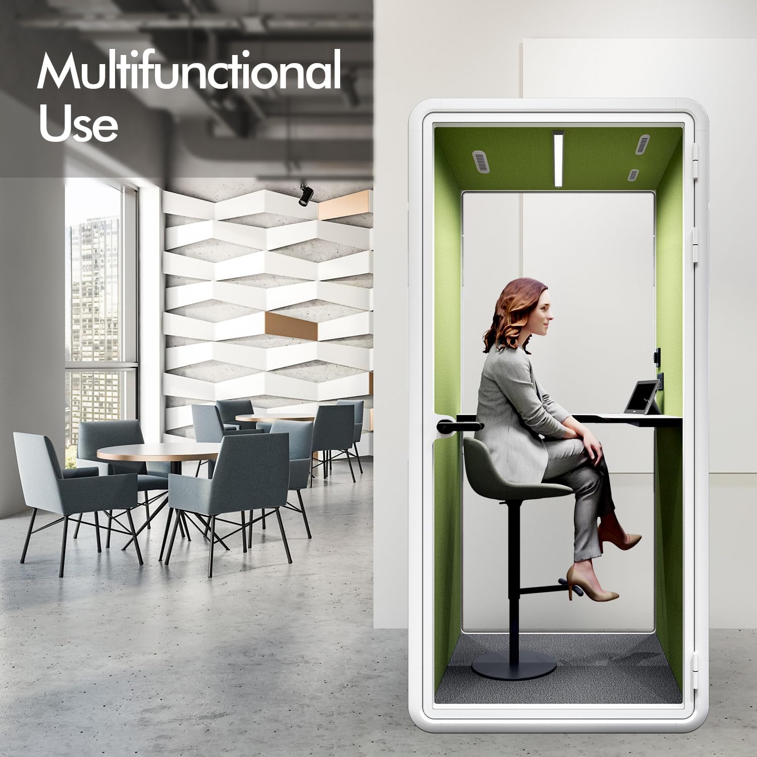 - [ Low Noise level ] Equipped with 2 layer of soundproof glasses using special glue, equivalent to 3 layers of soundproofing, the soundproof cubicle has better soundproofing effect for office productivity