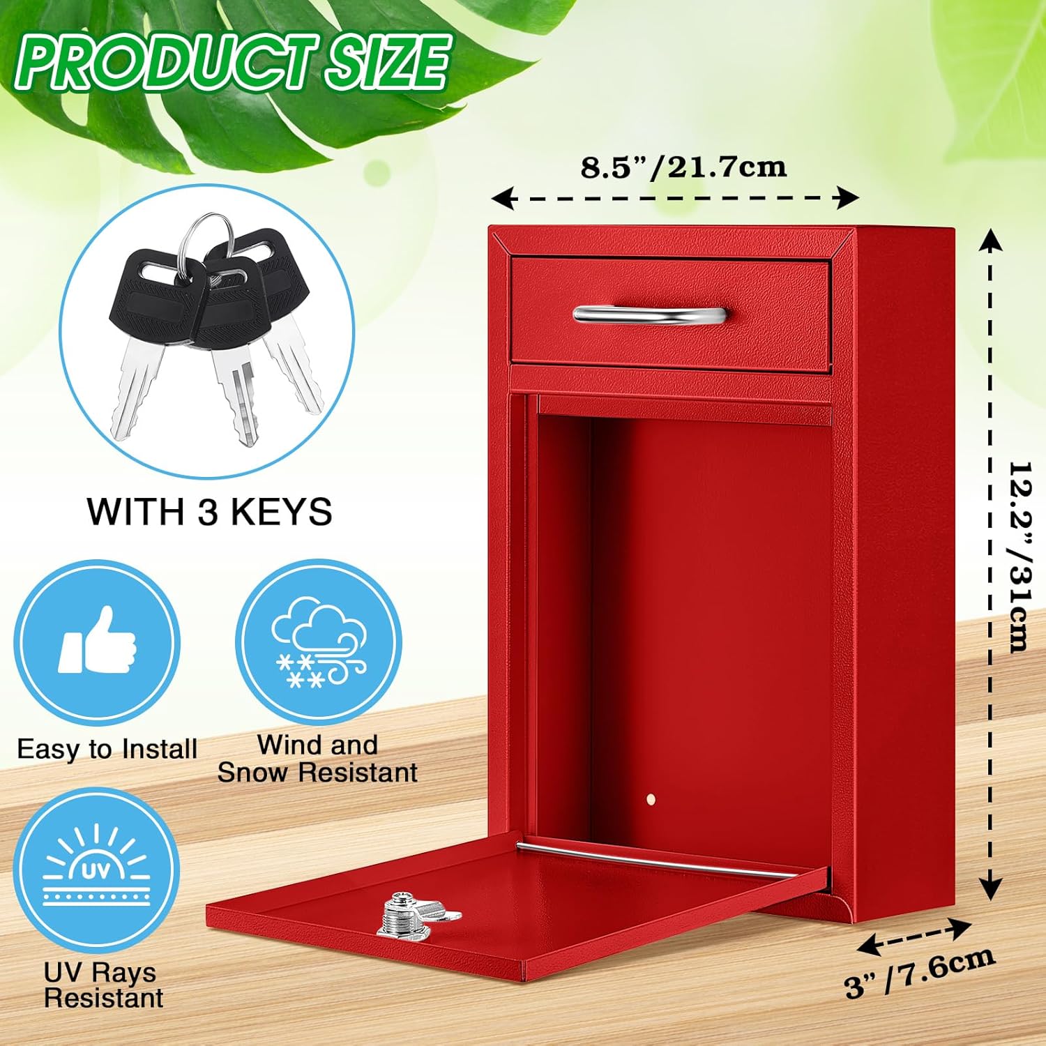 - Quality Material: crafted from quality metal material, this robust drop box promises durability; The wall mount mailbox is coated with red plating which prevents peeling off paint and rust, extending the product's service life