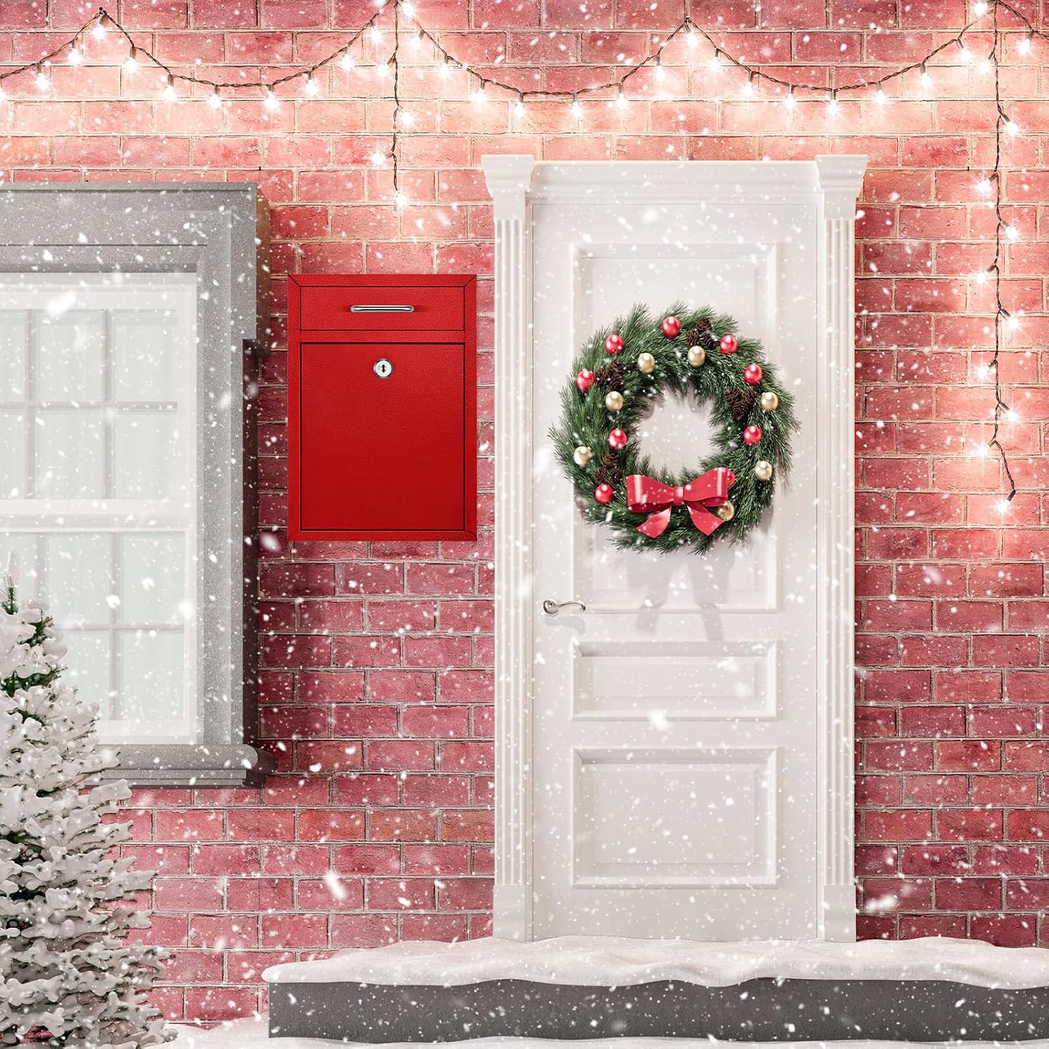 Locking Mailbox with Key for Outdoor 12.2 x 8.5 x 3 Inches Large Wall Mount Mail Box with Lock Security Mail Drop Metal Collection Boxes Hanging Secure Postbox(Red)