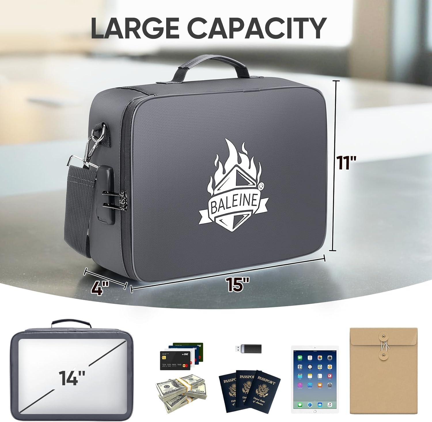 - Security Lock: BALEINE file boxes feature upgraded waterproof dual zippers and a combination lock, protecting your documents and valuables from unauthorized access and water damage