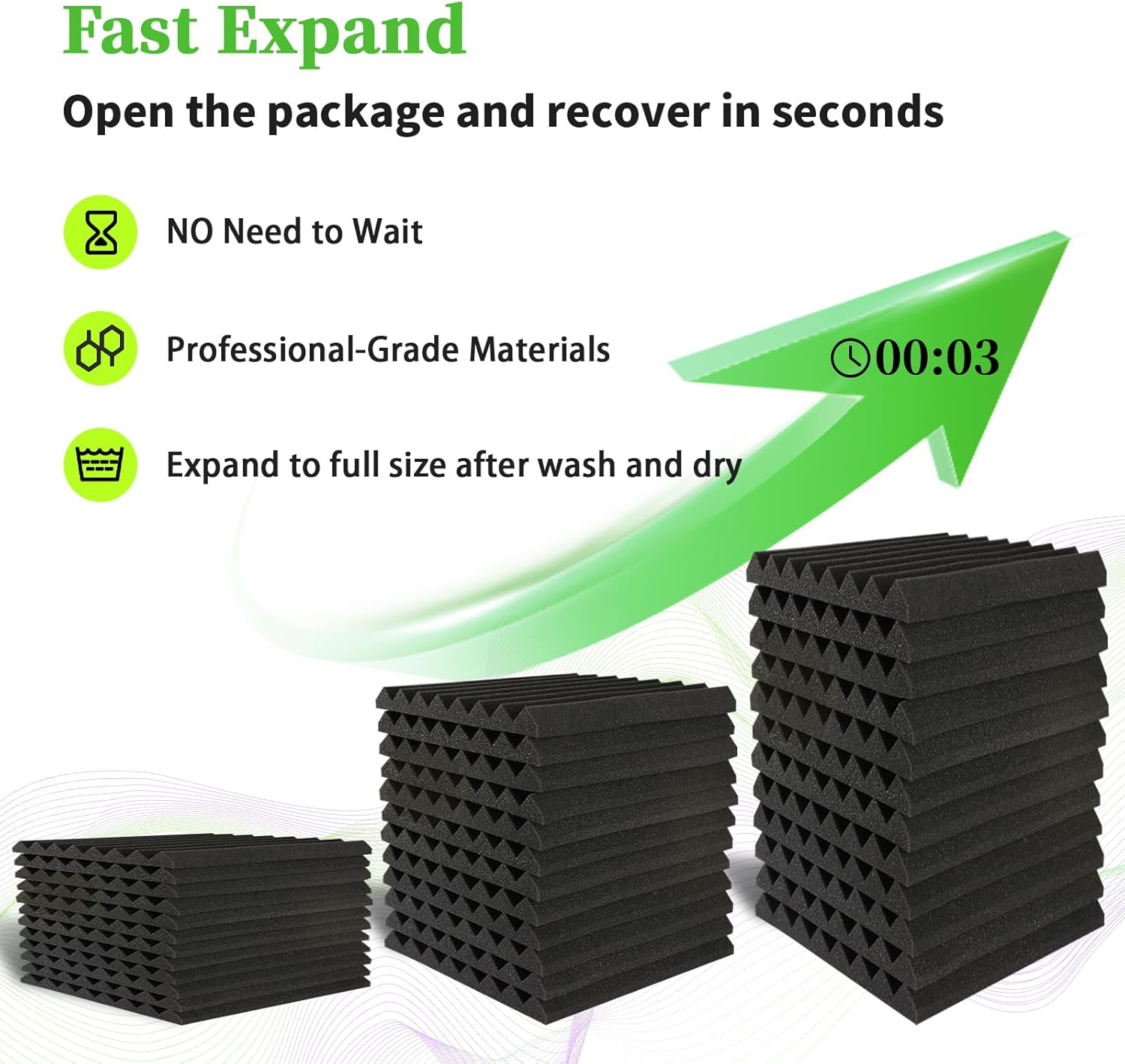 - Top-notch Quality: Our Acoustic Foam Panels are crafted from flexible, professional-grade material tailored for exceptional sound absorption in a wide array of soundproofing projects. The foam's density and firmness remain uniform, ensuring consistent acoustic absorption performance.