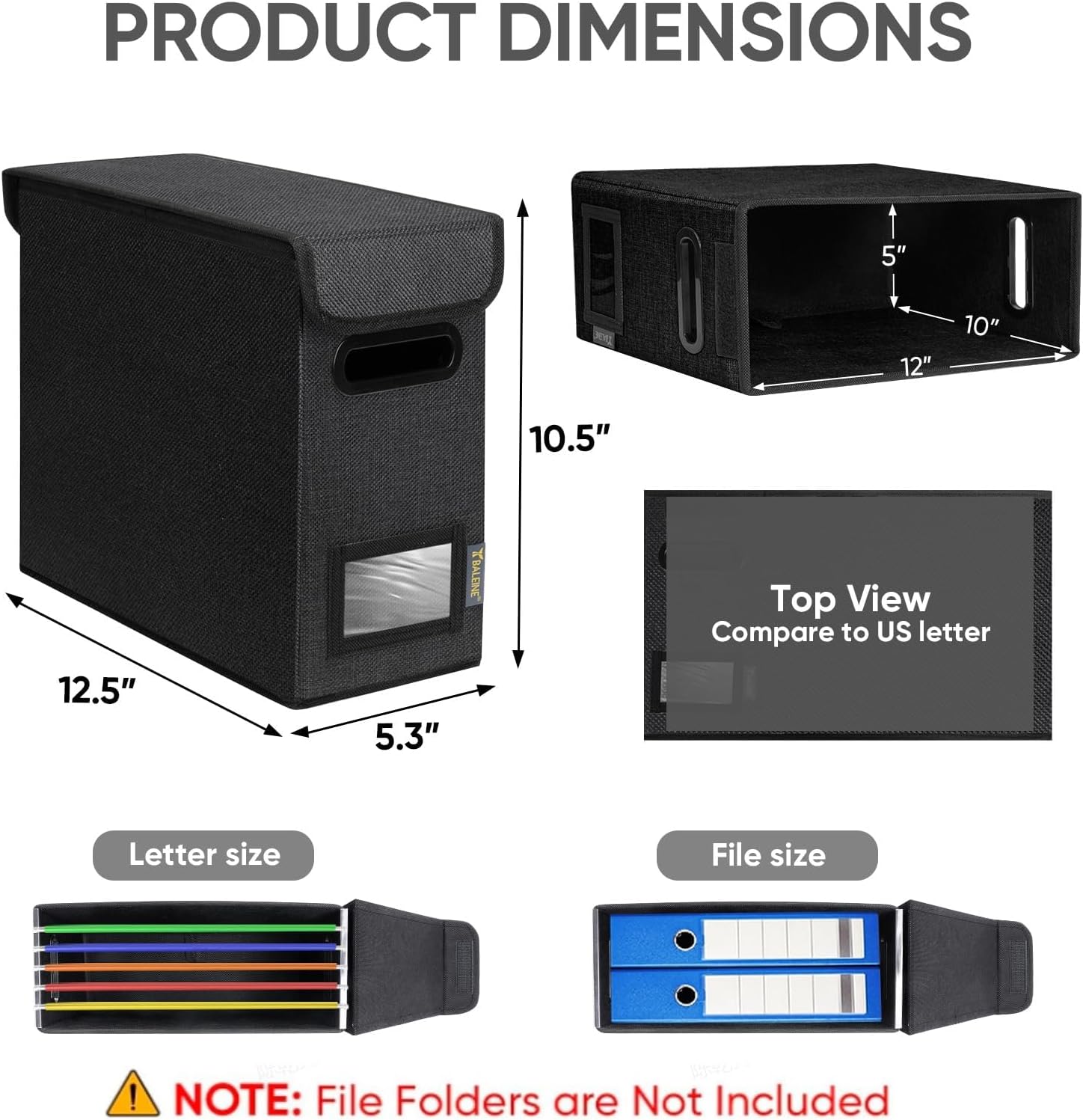 - [DURABLE MATERIAL] The outer layer of our filing box is crafted from high-quality polyester fabric and reinforced with thick cardboard in the middle. This construction ensures that the box maintains its shape and provides better bearing capacity for important documents and files. Its textured appearance can also serve as a stylish decorative element in any office or home