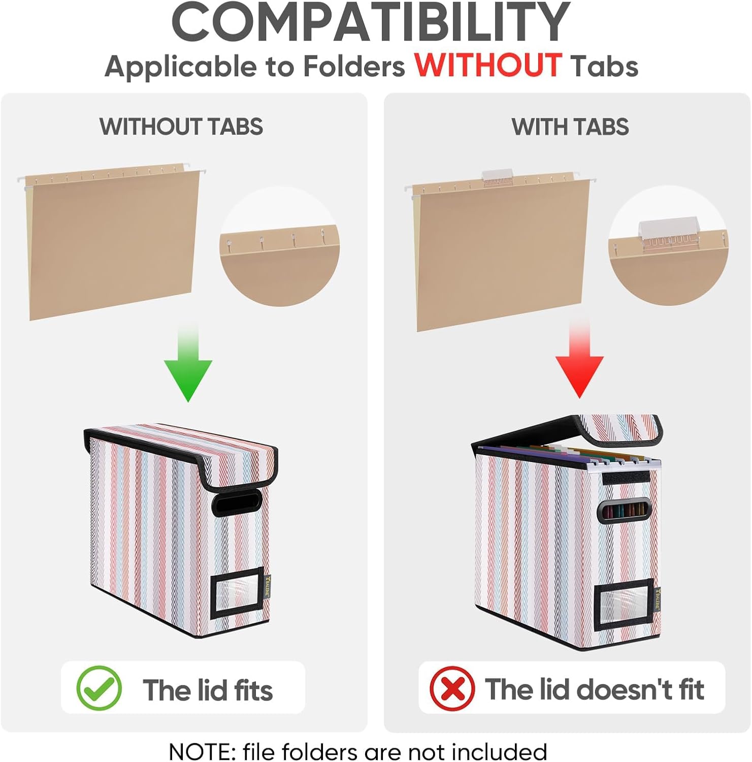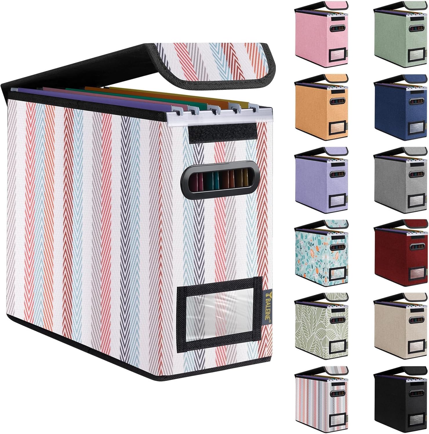 BALEINE File Organizer Box with Lid, Collapsible File Folder Organizer with Plastic Slide, Hanging File Folder Box for Office Document Storage (1 Pack, Color Stripe, S)