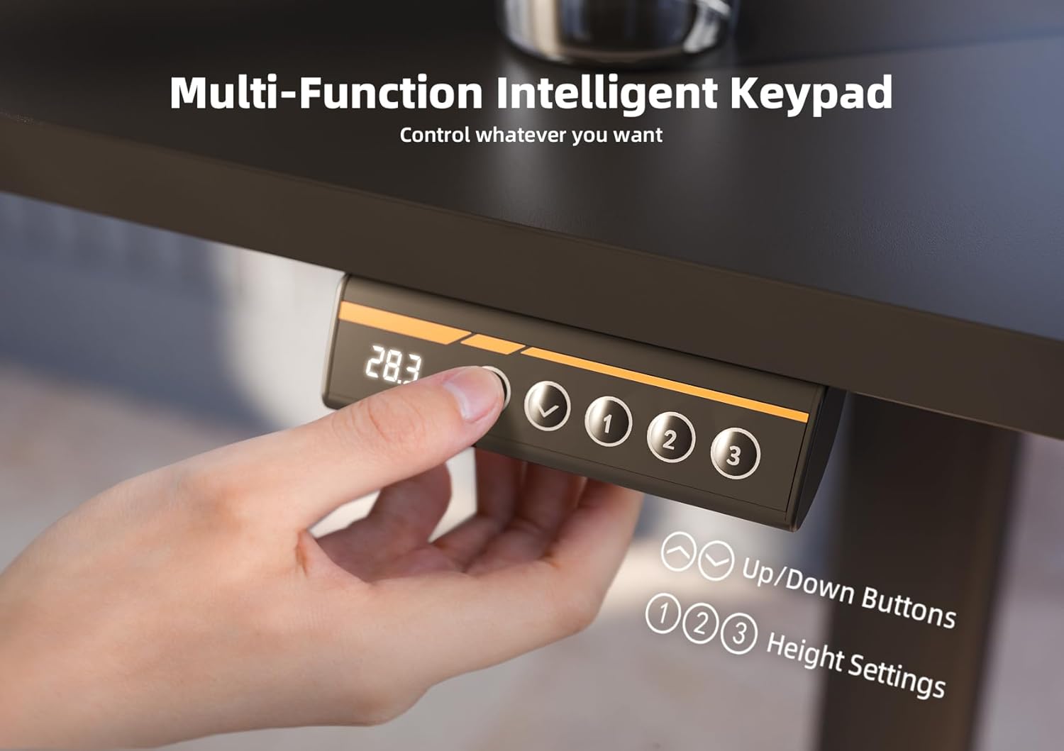 - Electric Height Adjustment: Electric standing desk features a robust motor, allowing you to effortlessly adjust the height from 28.3 inches to 46.5 inches (including the 2.36-inch desktop thickness). With 3 programmable height presets, you can easily find your preferred height for maximum comfort and convenience.