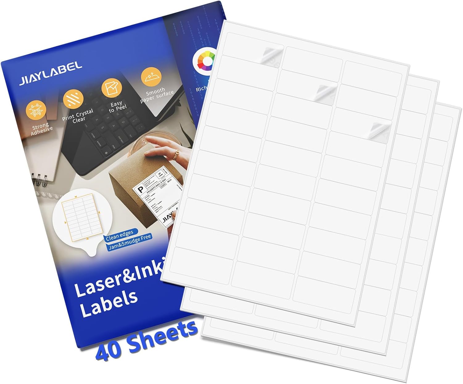 Shipping Label Return Address Mailing Sticker Paper 1" x 2-5/8" 1200 Labels for Inkjet Printer 5160 5260 8160 Printing Printable Easy to Peel to Write on Envelope Blank Matte White 8.5 x 11, 40 Sheets