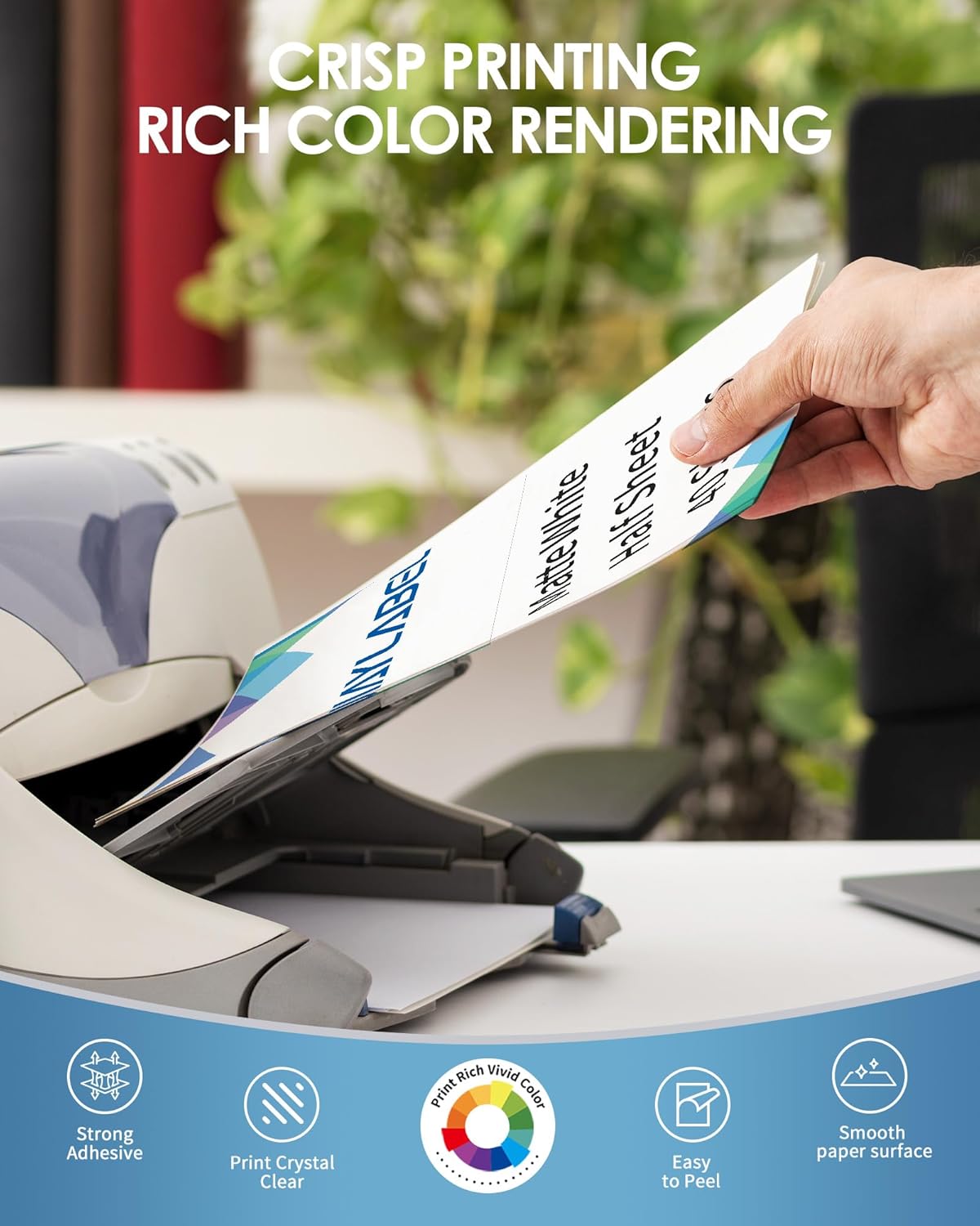- Commercial-Grade Labels: 8.5”x5.5” matte white printable stickers, 2 labels per sheet, 40 sheets. Smooth surface, crisp clear print, self-adhesive, writable, quick dry, perfect for your business and your life