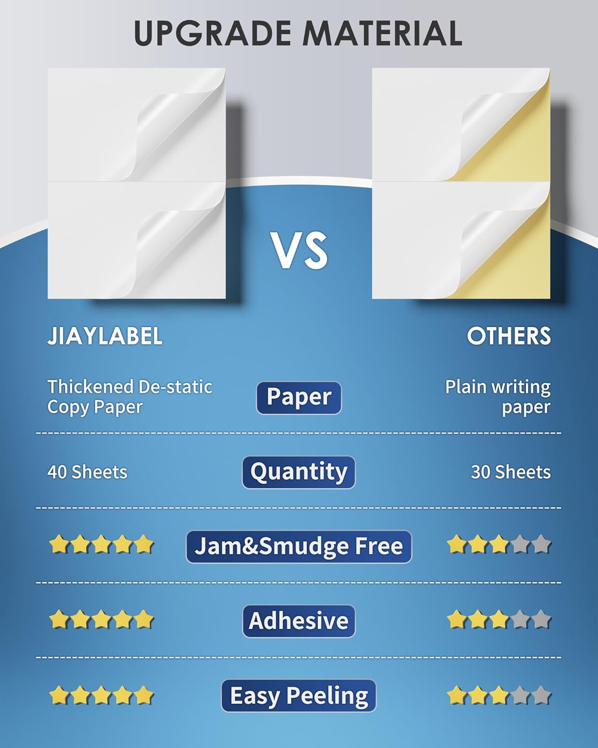 - Upgrade Material: In order to avoid jam and smudge, we discard the writing paper, do not consider the cost increase brought about by material upgrading, and use thickened de-static copy paper to make the label, just for your best experience and save your business money