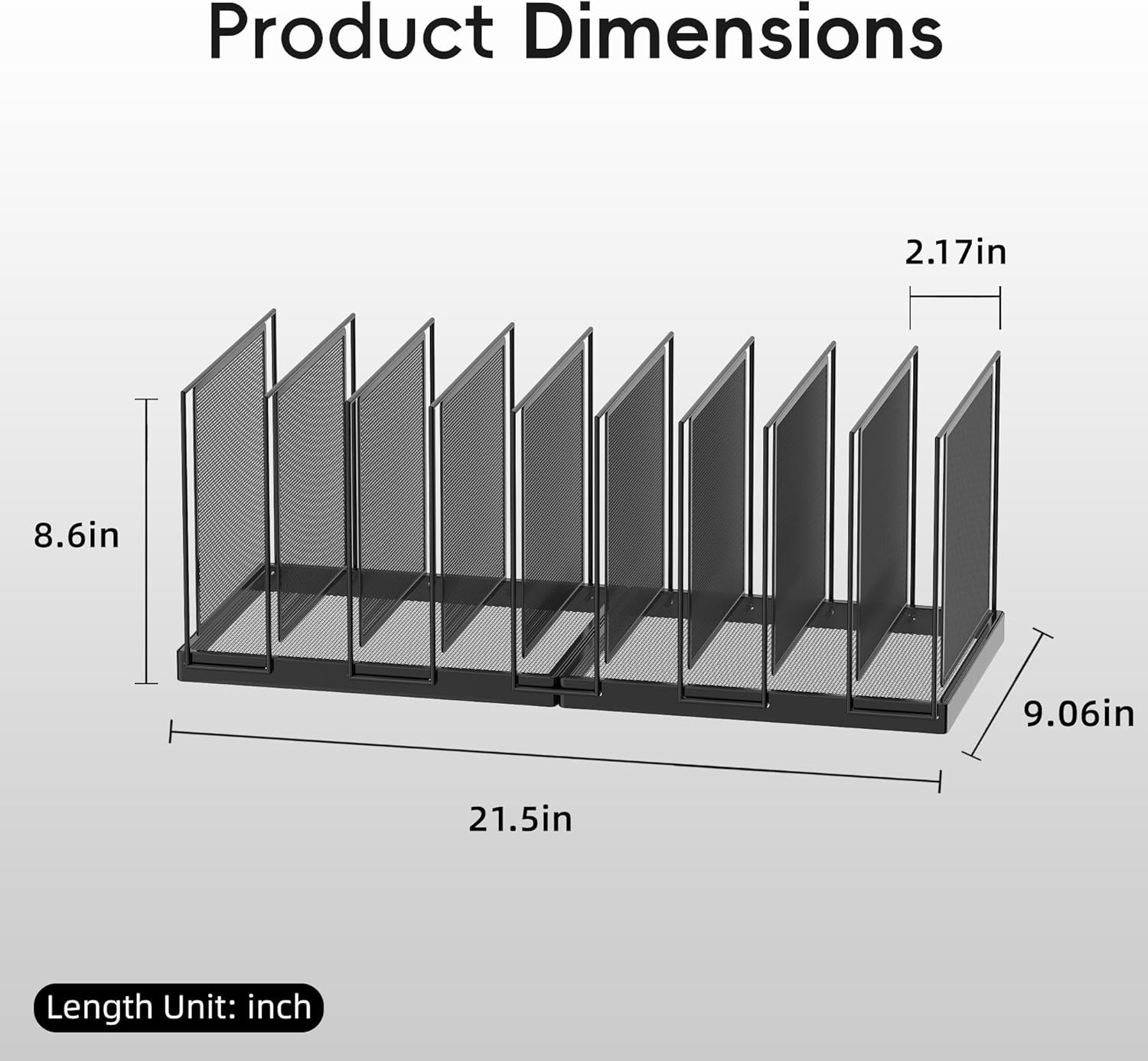 - [9 File Compartments] Our 9-section file folder organizer provides more storage space for files, books, mails, paper and magazines. 9 vertical sorters can hold your documents and laptop upright, allowing you to easily keep workspace tidy and organized.