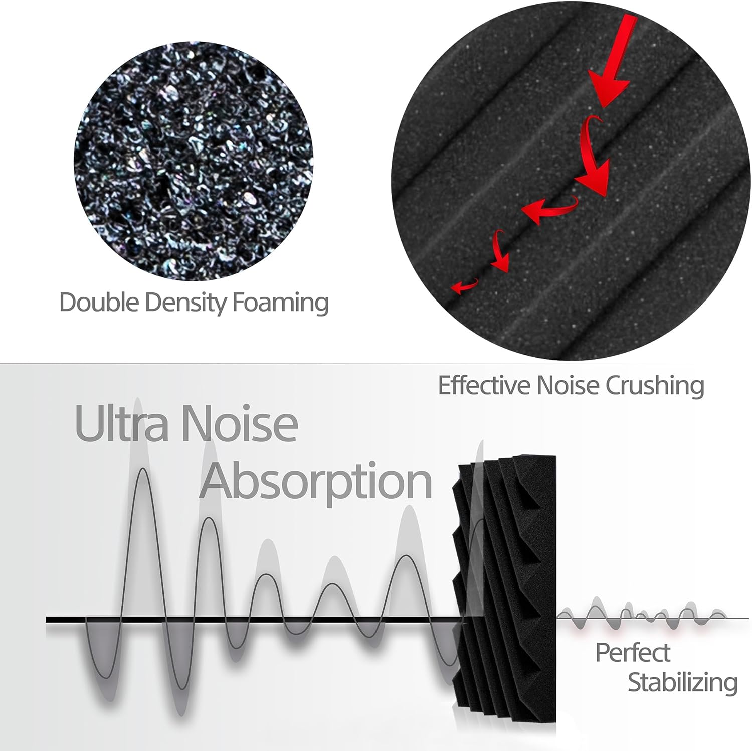 - Harmonious design - Our sound dampening panels is 2" thick and 12"x12" size and made with polyurethane foam to make your workspace or gaming room look even more professional with stylish diagonal line pattern design as well as high-frequency control and insulation