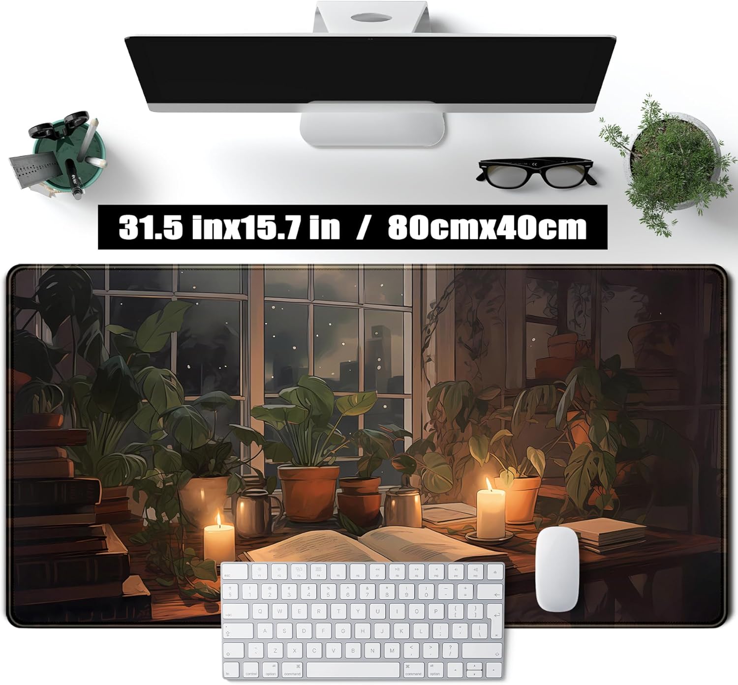 Cute Book Lover Desk Mat Dark Academia Mouse pad XXL Large Extended Mousepad Gaming Desk Pad with Stitched Edges, Cozy Lofi Deskmat Laptop Computer Keyboard and Mouse Mat Decor Pad, 31.5x15.7 in