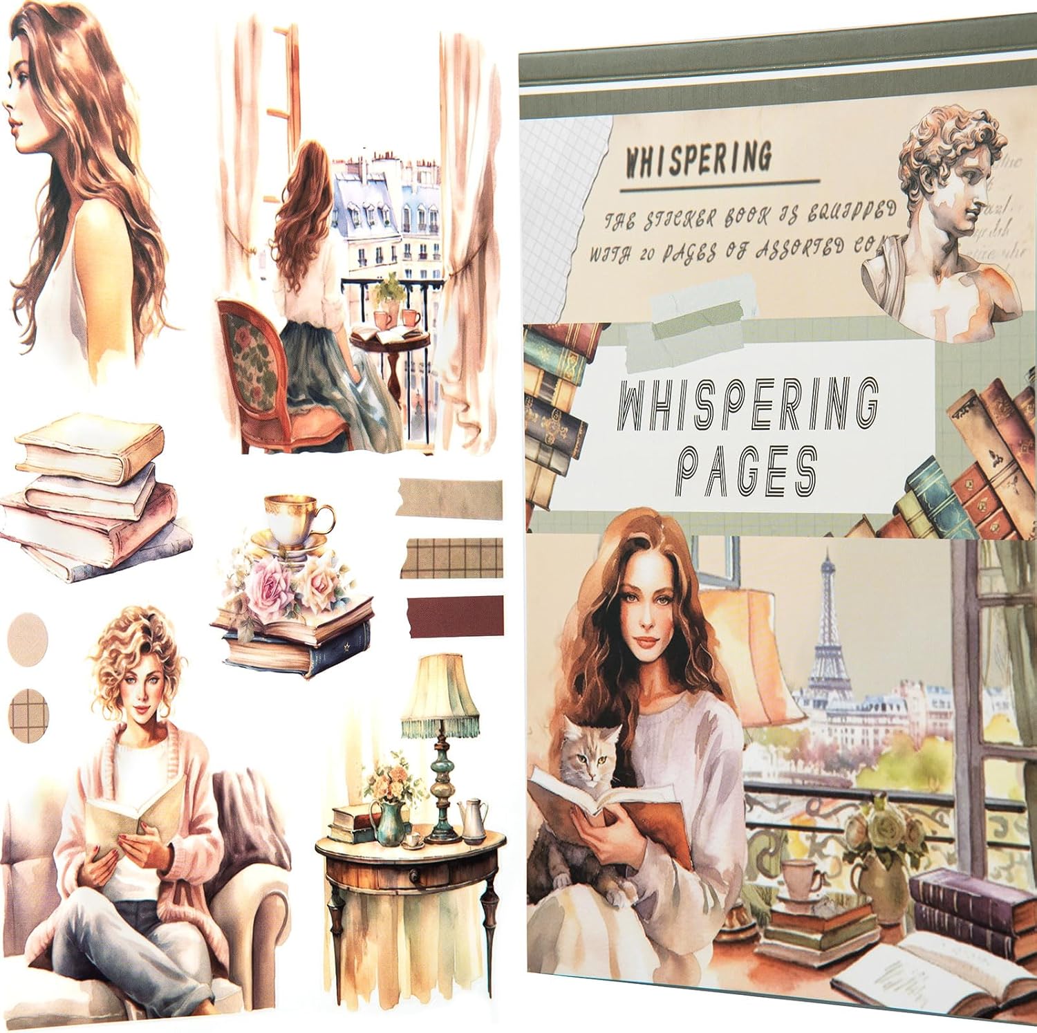 YagCu Journaling Sticker Book, Reading and Writing Scrapbook Stickers, Junk Journal Supplies, Pre-Cut Aesthetic Scrapbooking for Women, Collage Decorative Ephemera Bullet Planner DIY Arts