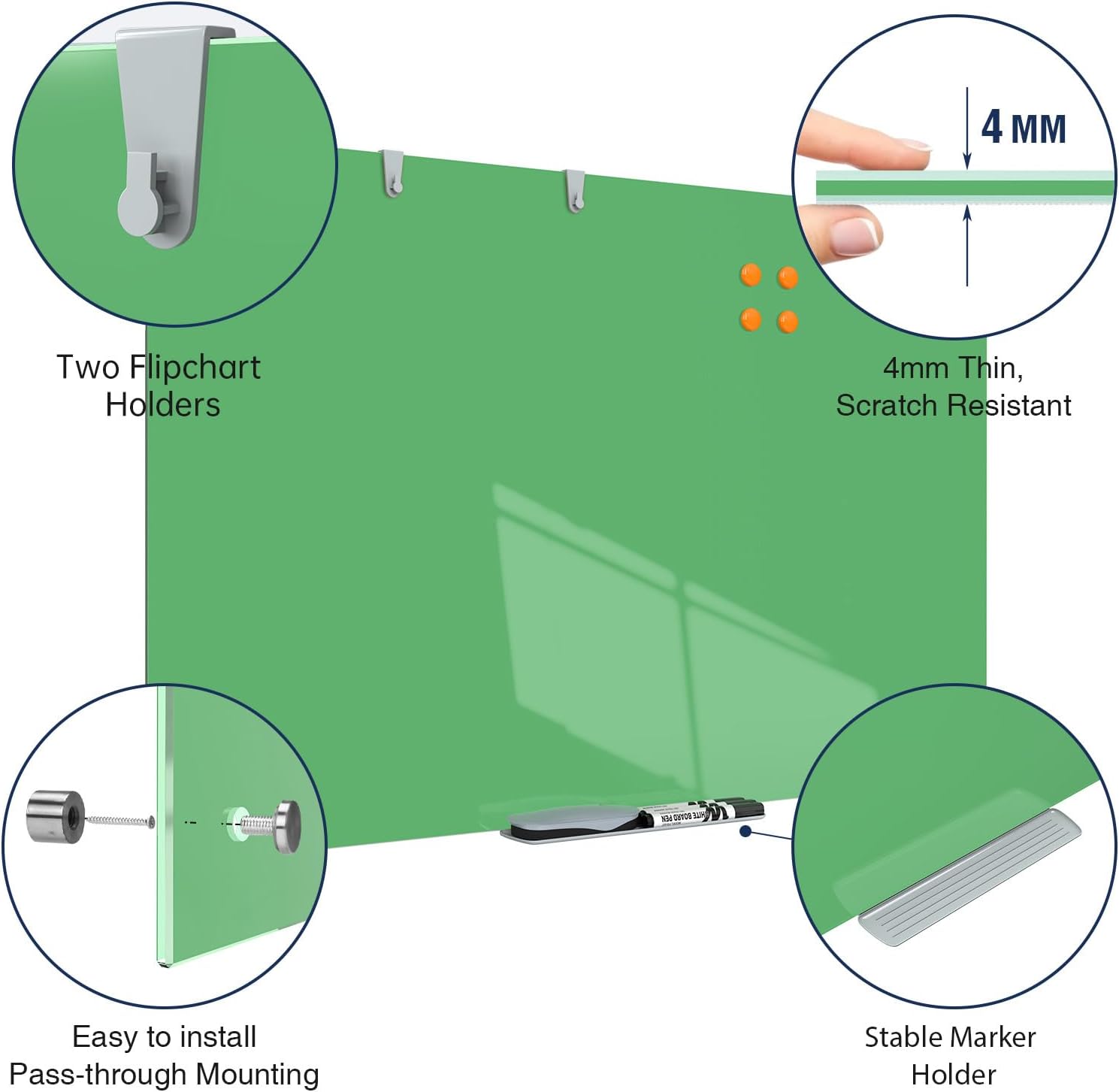 TSJ OFFICE Glass Dry-Erase Board - 36 x 24 Inches Wall Mounted Magnetic Whiteboard, Large Frameless Glass White Board for Office, Home & School, Green