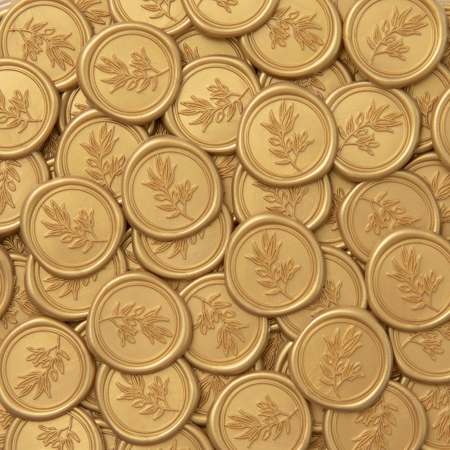 PONATIA Gold Wax Seal Stickers - Eucalyptus Wedding Invitation Envelope Seal, 50 Pcs Self-Adhesive, Perfect for Invitations, Christmas, Gift Wrapping, Party Menu Decor