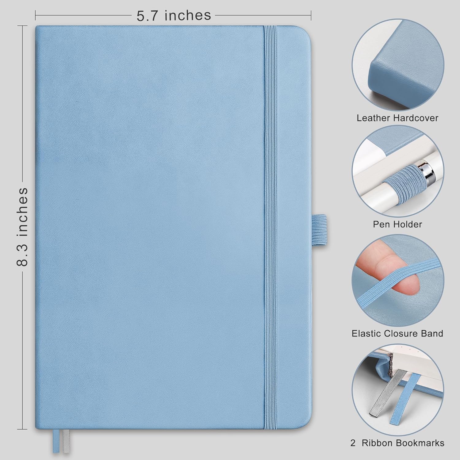 RETTACY Blank Journal Notebook, 192 Pages, A5 Medium Size (5.7'' x 8.3''), Leather Hardcover, 100 GSM Thick Paper, for Sketching, Drawing, Painting (Light Blue)