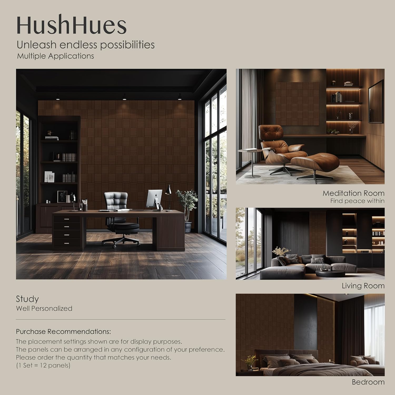 12-Pack Acoustic Panels, 16"x12"x0.4" Large Acoustic Wall Panels, Self-Adhesive Sound Absorbing Panels for Recording Studios & Offices, Brown+Black Decorative Acoustic Panels
