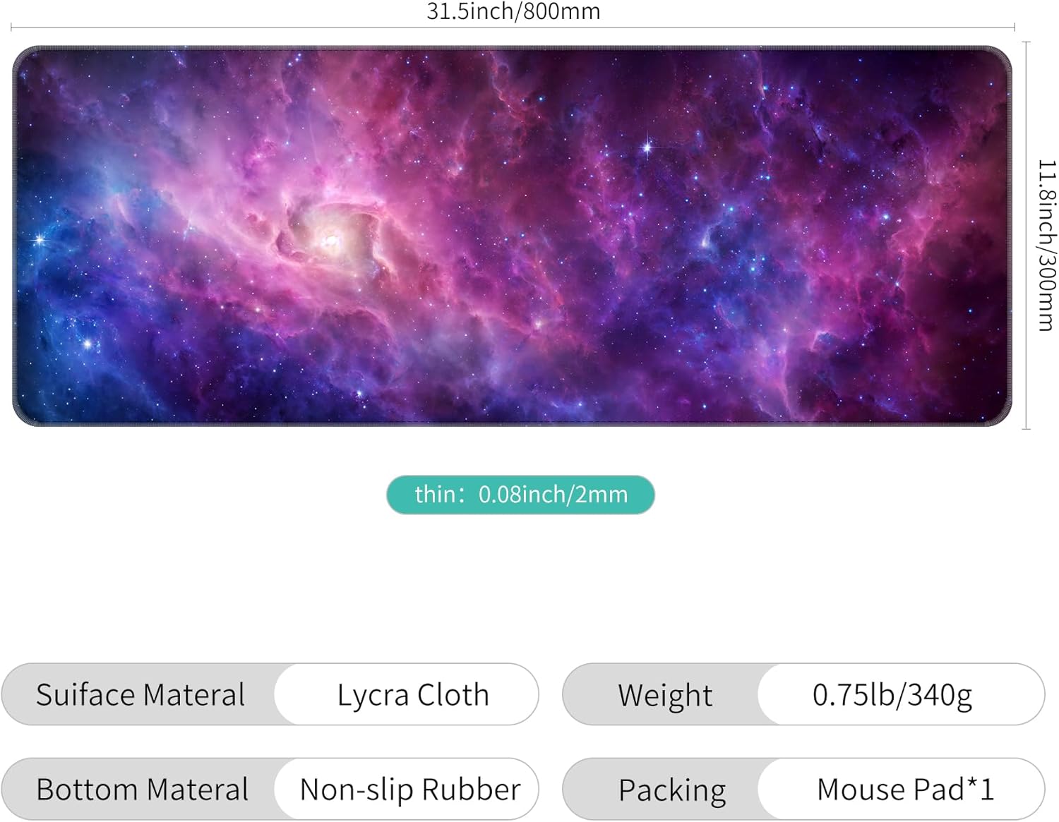 - Large Size - 31.5*11.8*0.08 inch(800*300*2mm)makes it provide larger area fits both for keyboard and mouse