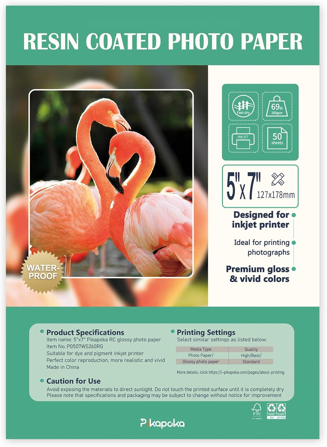 - Archival-Grade Quality: Pikapoka 5x7 RC glossy photo paper is more durable due to its protective resin coating. Can last for years without fading