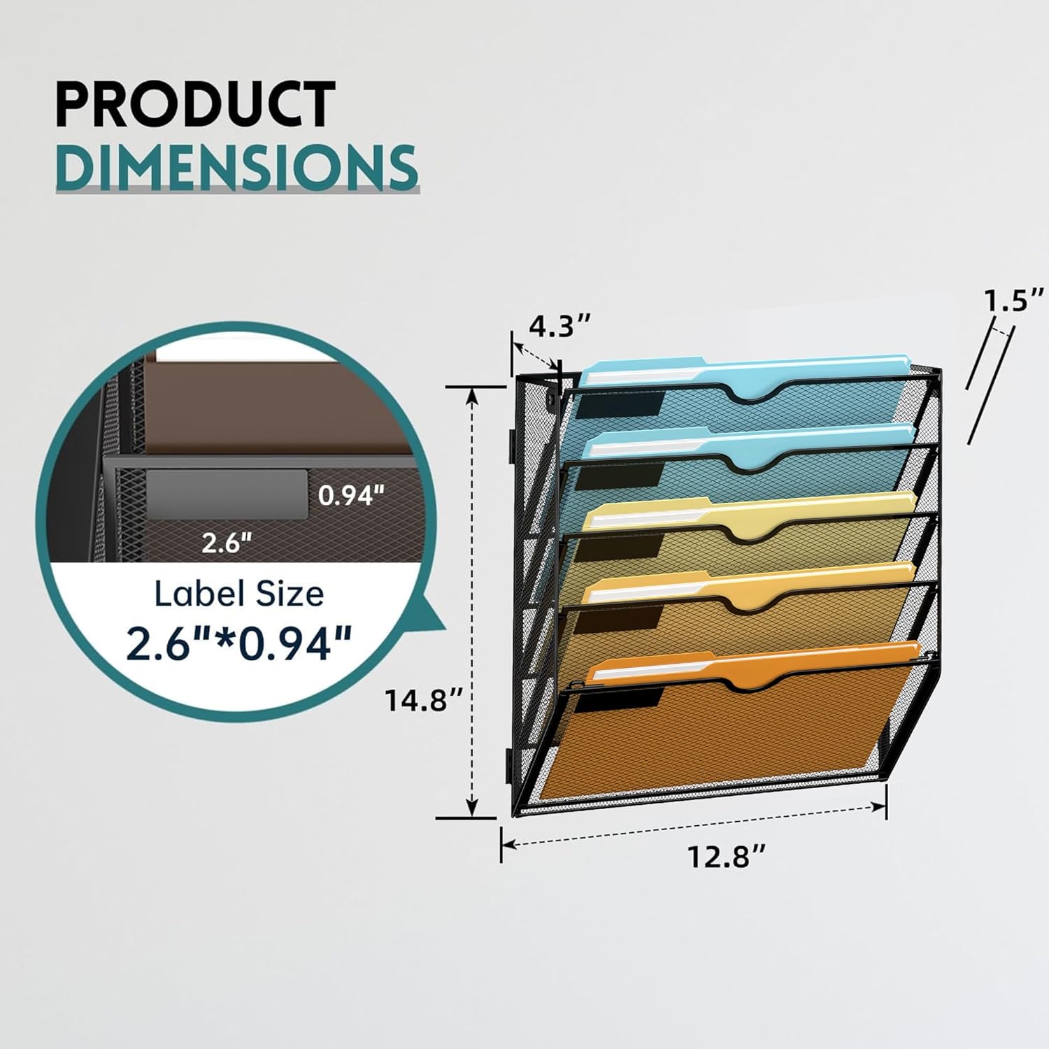 - [Optimized Space Utilization] With 5 cascading slots, this wall file organizer provides ample space for your office files, accommodating letter-size charts, files, notebooks, and more.