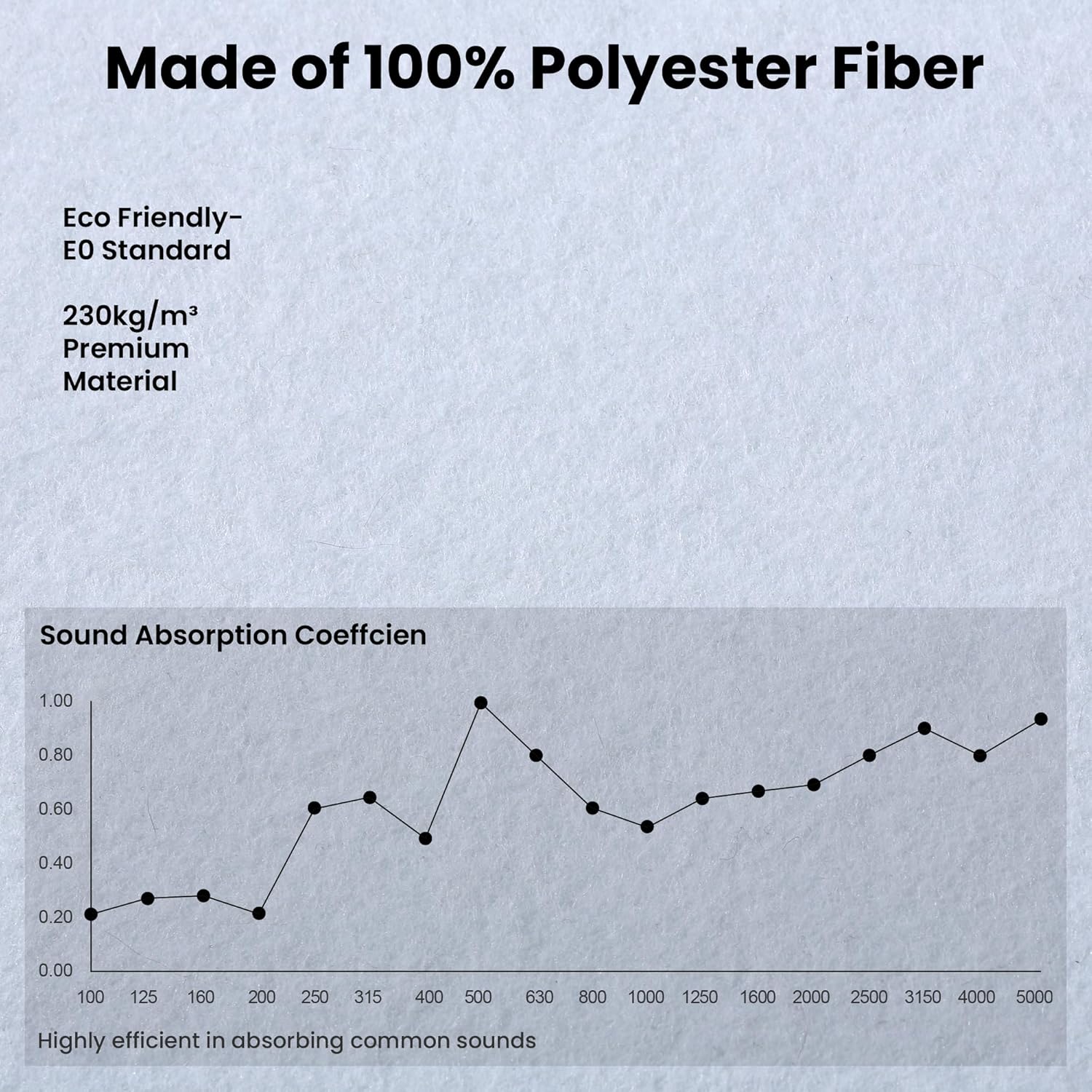 - 100% Polyester Fiber - The wall soundproofing panels is carefully made of 100% polyester fiber. Polyester fiber large acoustic panels have many advantages, such as excellent sound absorption, effective resistance to moisture and mildew, easy to cut,good stability, and has a high cost-effective.