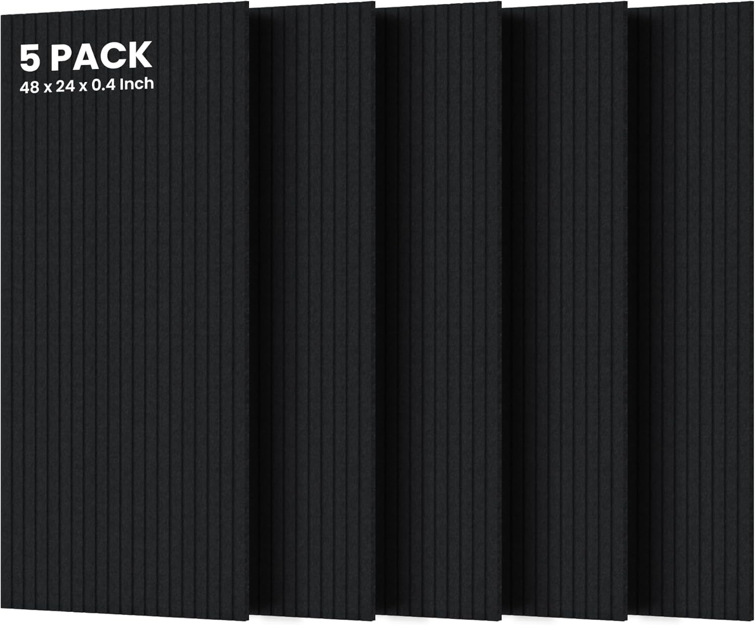 5 Pack Acoustic Panels, 48 x 24x 0.4 Inch Sound Proof Panels for Walls, Premium Wall Sound Absorbing Panels, Decorative Sound Dampening Panels for Media Room, Office and Studio,Black