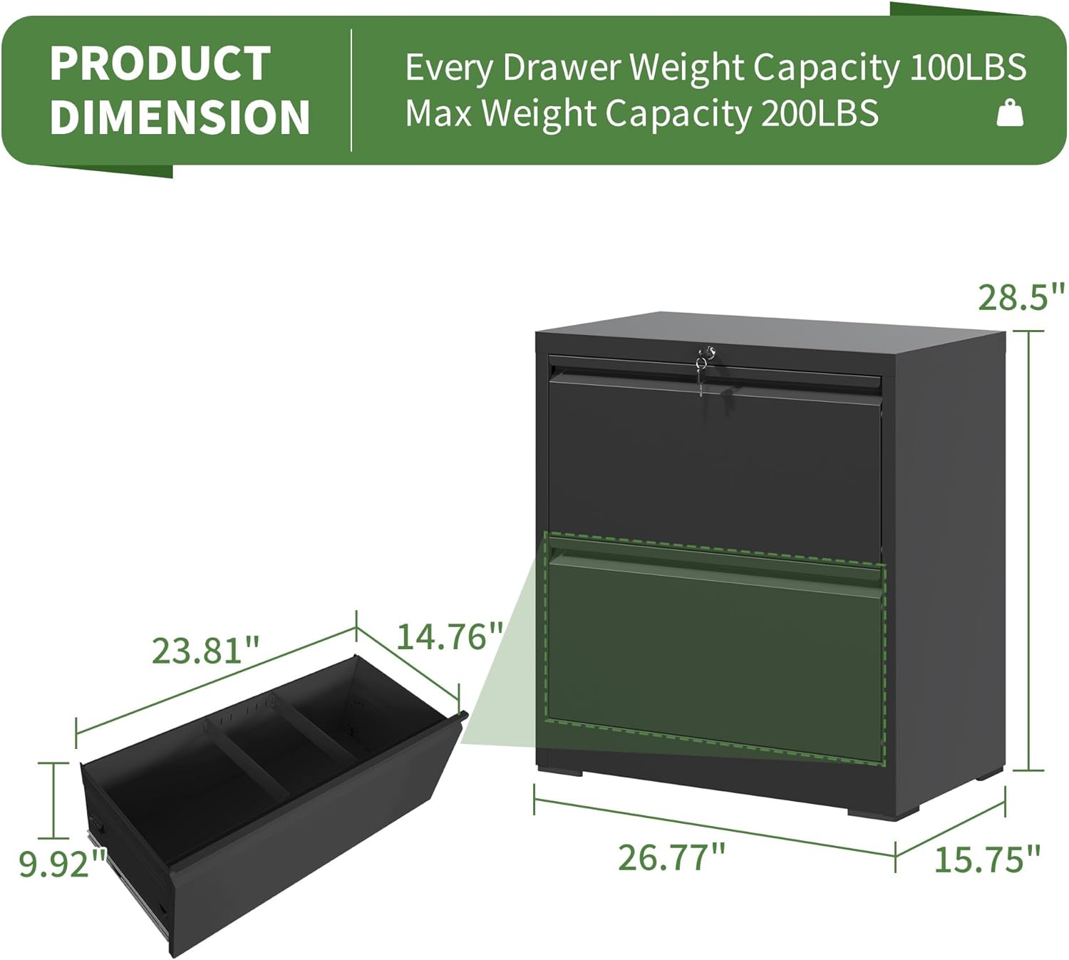 2 Drawer Lateral File Cabinet, Metal Lateral Filing Cabinet for Home Office, Filing Cabinets for Letter/Legal/A4/F4 Hanging Files (Black)