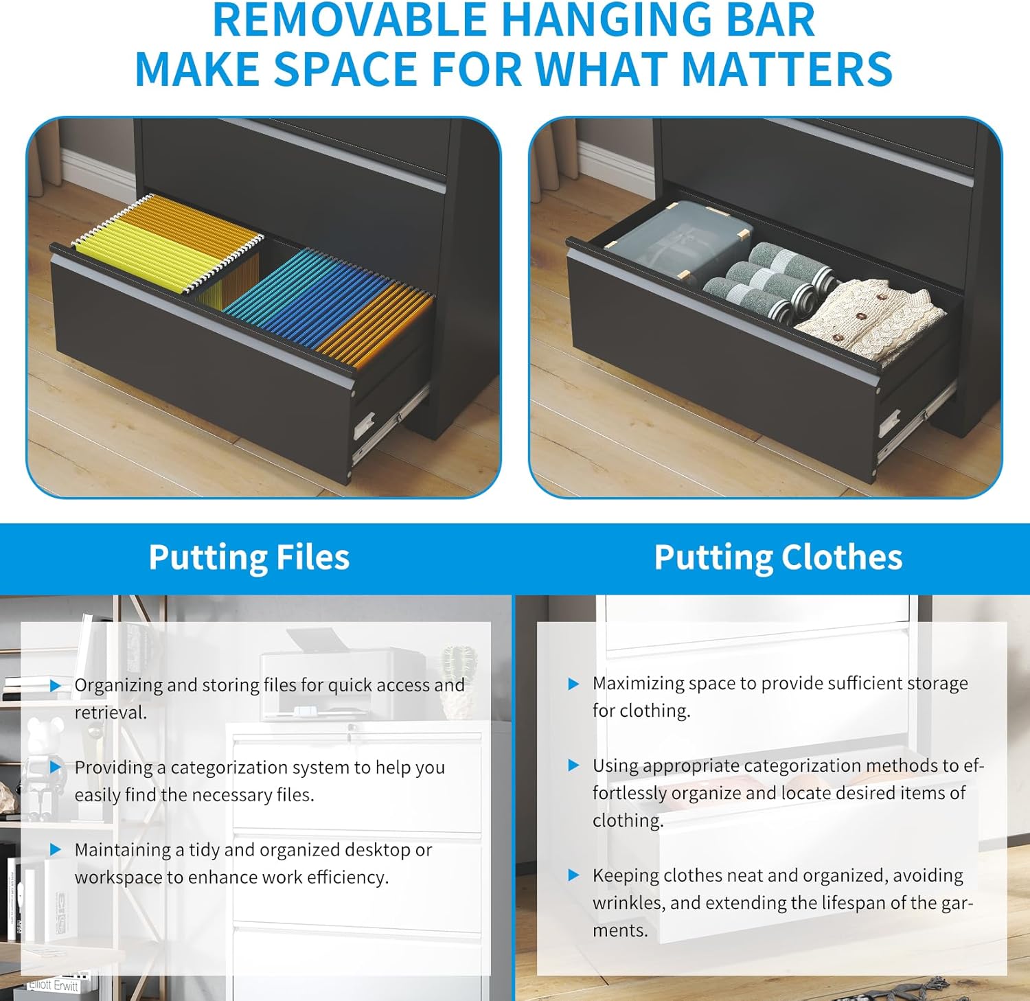 - 【Full Extension Drawers】 This premium office file cabinet features ball-bearing slides with full-extension capability, allowing drawers to open completely for full access to stored documents. It's an ideal choice for home offices, medical facilities, law firms, and any environment requiring reliable document protection and user safety.