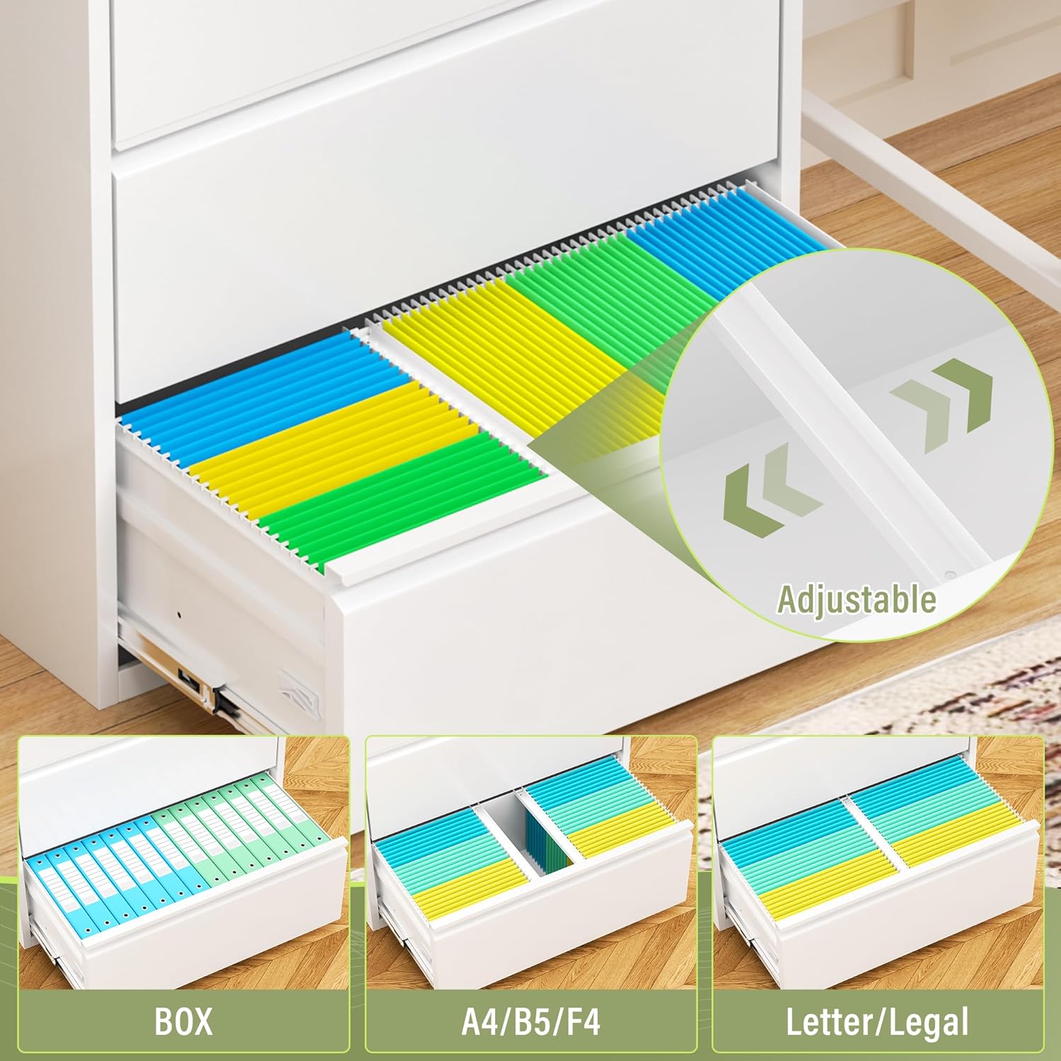 Incbruce 28" W 4 Drawer Lateral File Cabinet, Metal 4 Drawer Lateral Filing Cabinet with Lock, Steel Wide Filing Organization Storage Cabinet for Home, Office, Fit A4/F4/Letter/Legal File (White)