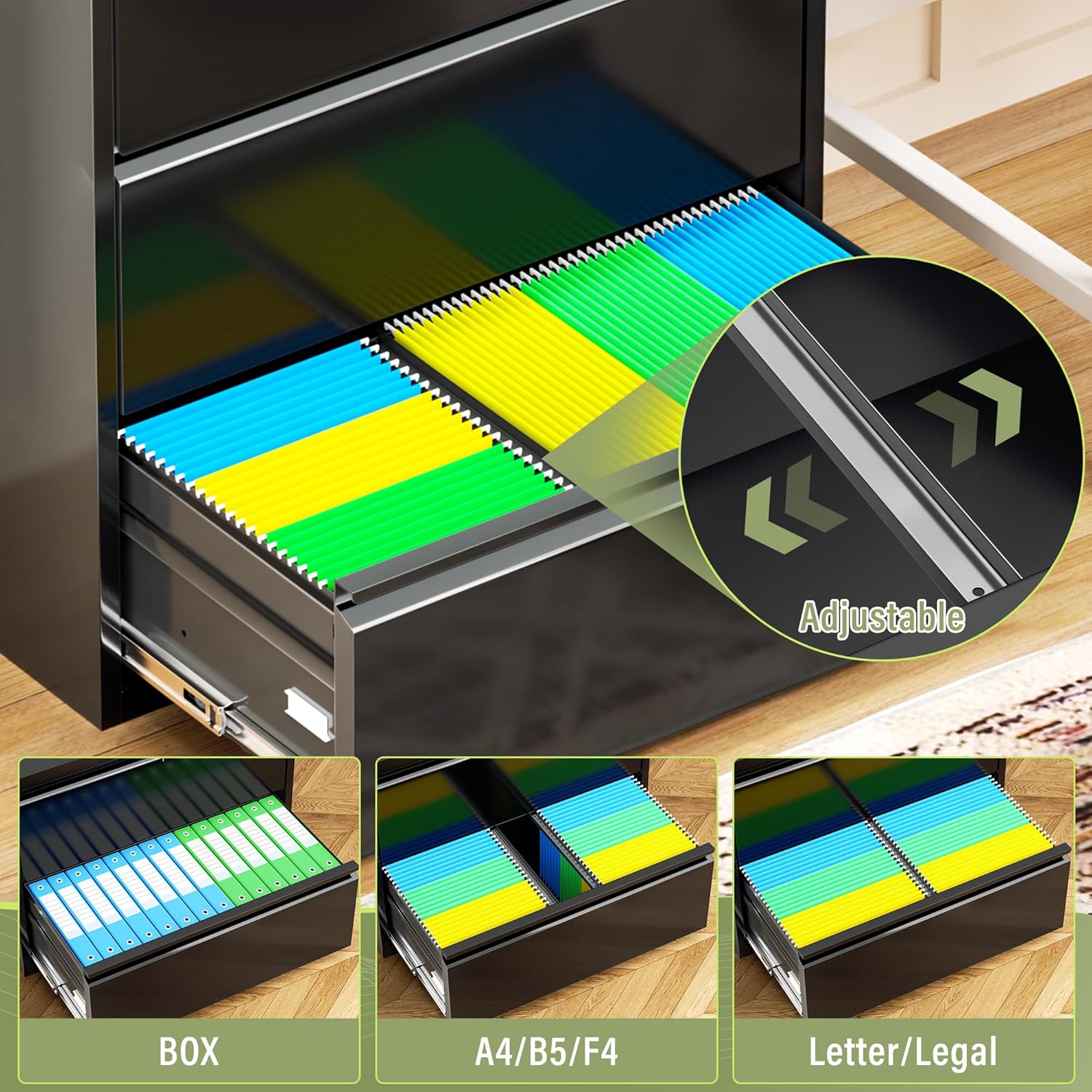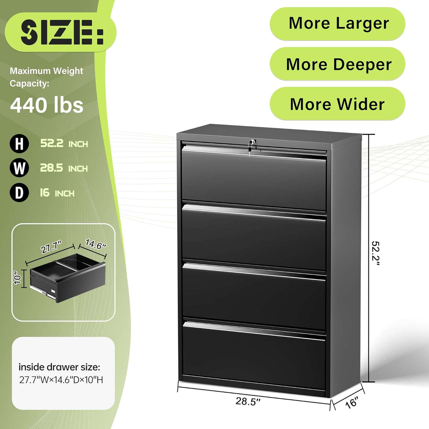 Incbruce 28" W 4 Drawer Lateral File Cabinet, Metal 4 Drawer Lateral Filing Cabinet with Lock, Steel Wide Filing Organization Storage Cabinet for Home, Office, Fit A4/F4/Letter/Legal File (Black)
