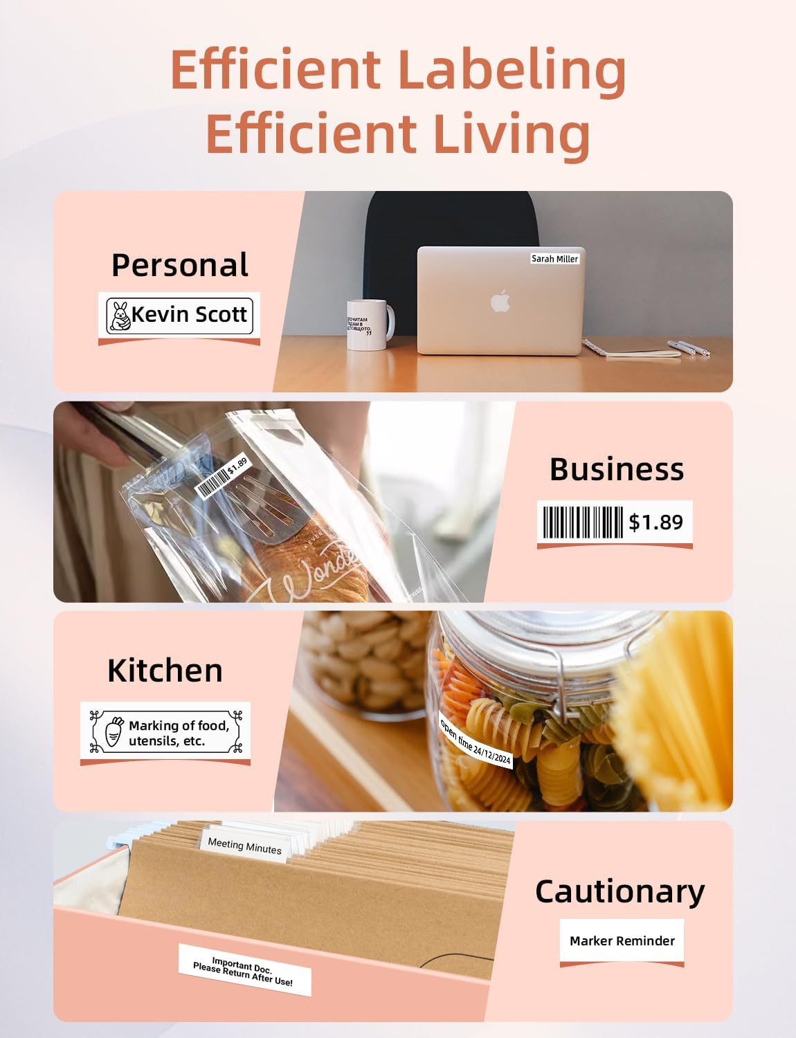- Clear & Lasting Prints: Thermal printing technology makes for sharp and precise outputs. The easy-peel-and-stick printing tape is waterproof, won't fade for years, and leaves no sticky glue residue