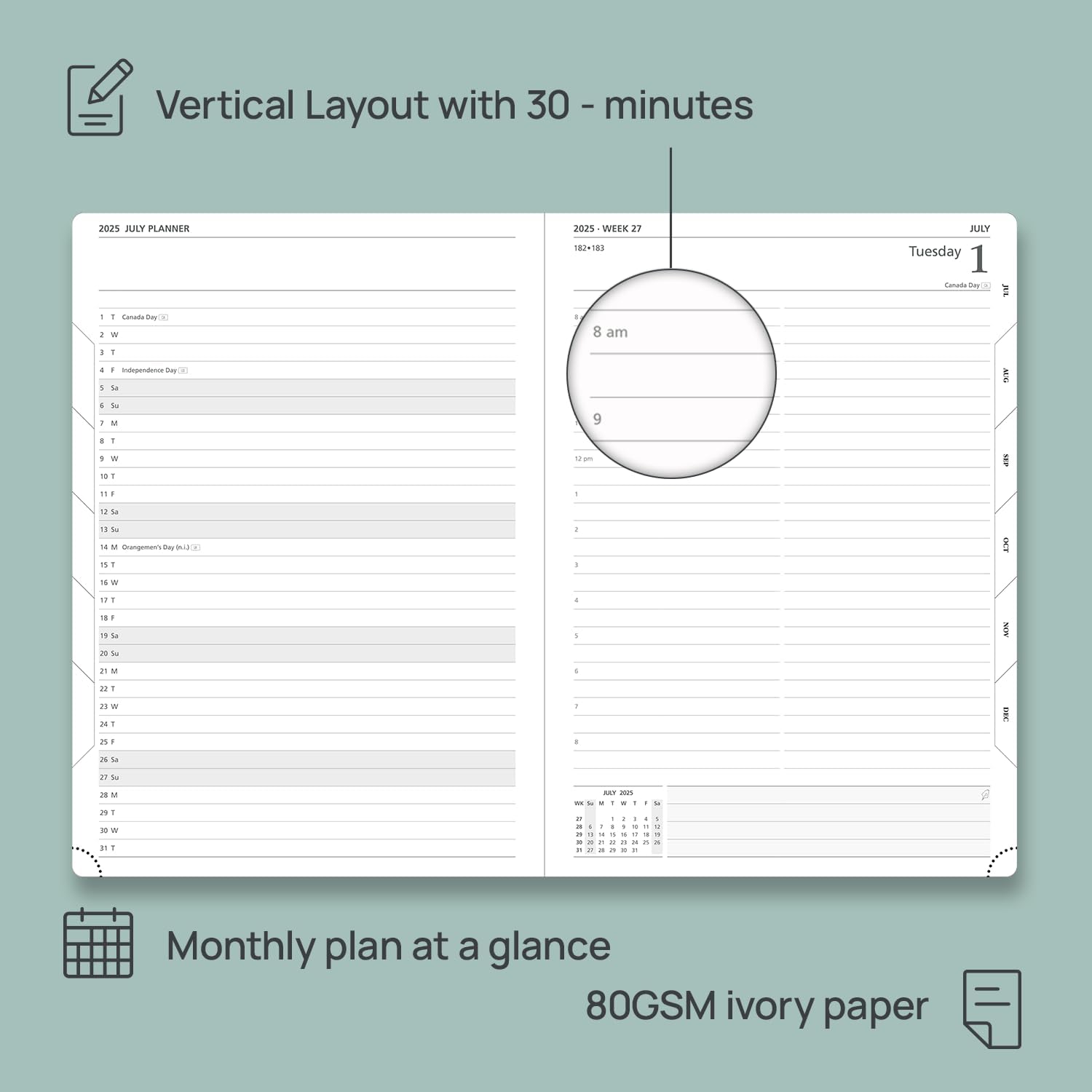 - A4 LARGE SIZE - This 2025-2026 daily planner features an A4 size, measuring 8.25" x 12". It is slightly smaller than a 14" tablet, providing ample space for detailed writing and planning. This generous size ensures that you have enough room to organize your busy daily routines with ease.