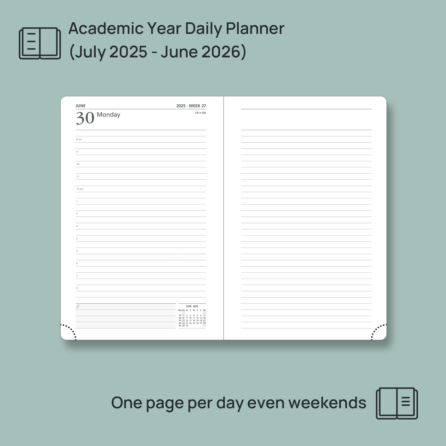 - ONE PAGE PER DAY, INCLUDING WEEKENDS - This daily planner (July 2025 – June 2026) offers 365 daily pages, each with ample space for hourly scheduling. It keeps your busy daily routines organized and manageable.