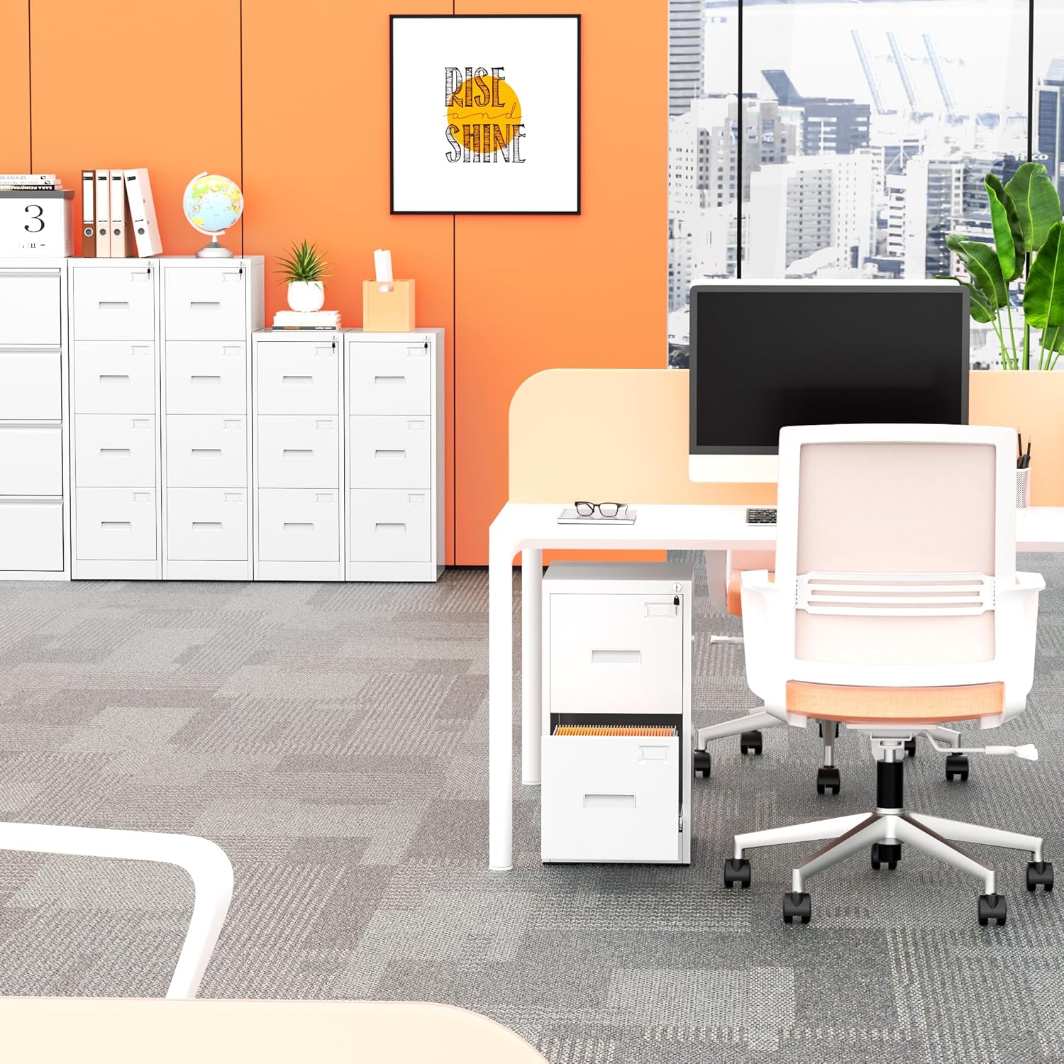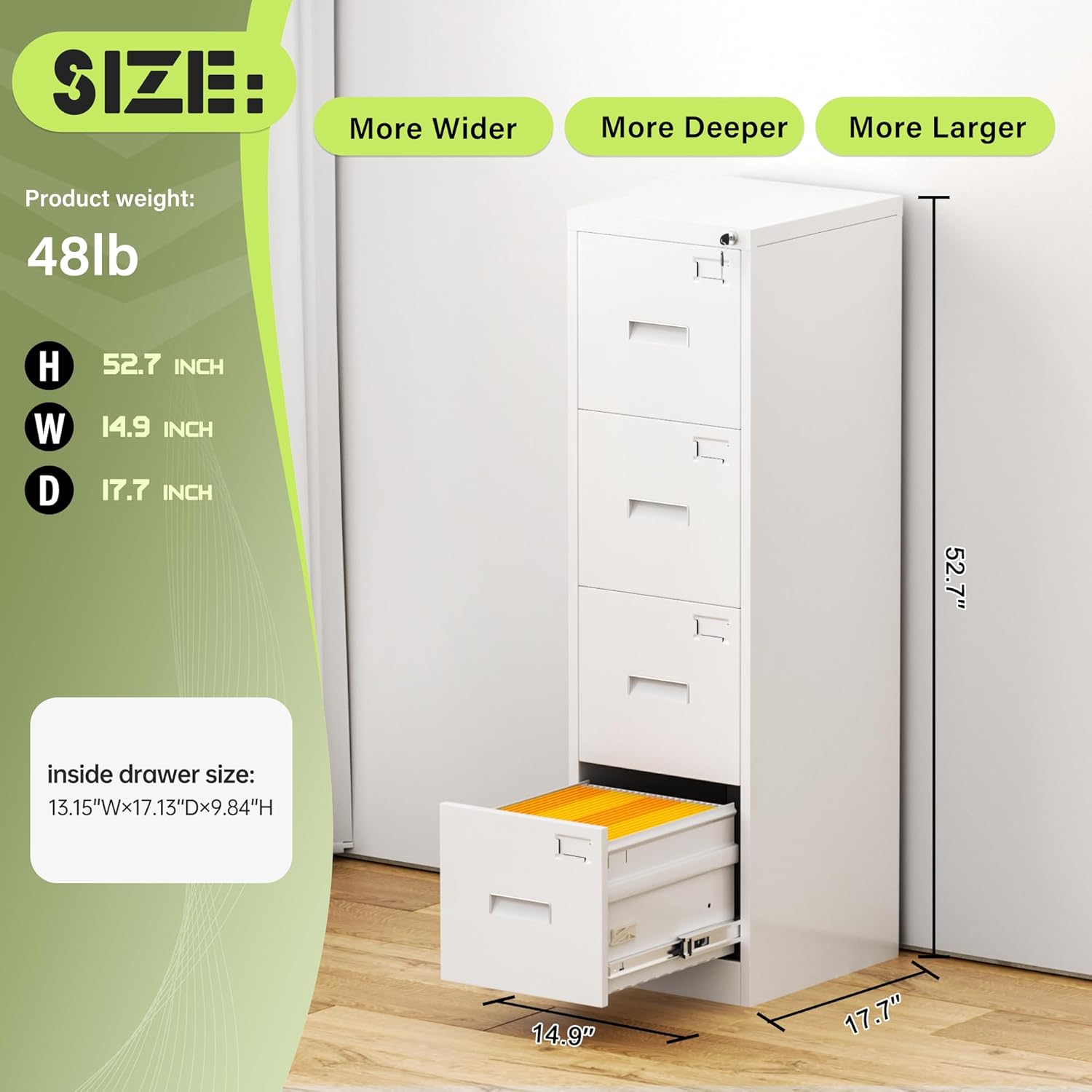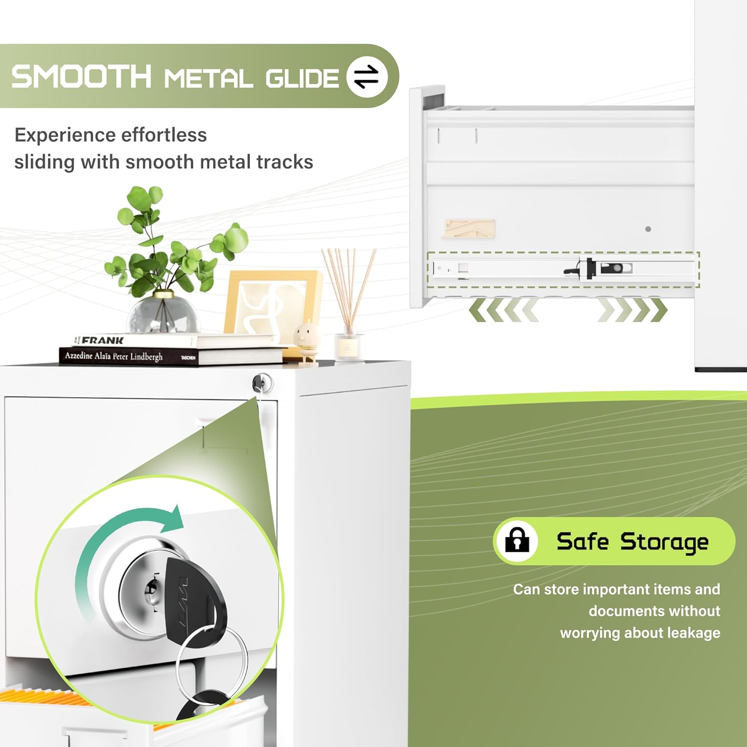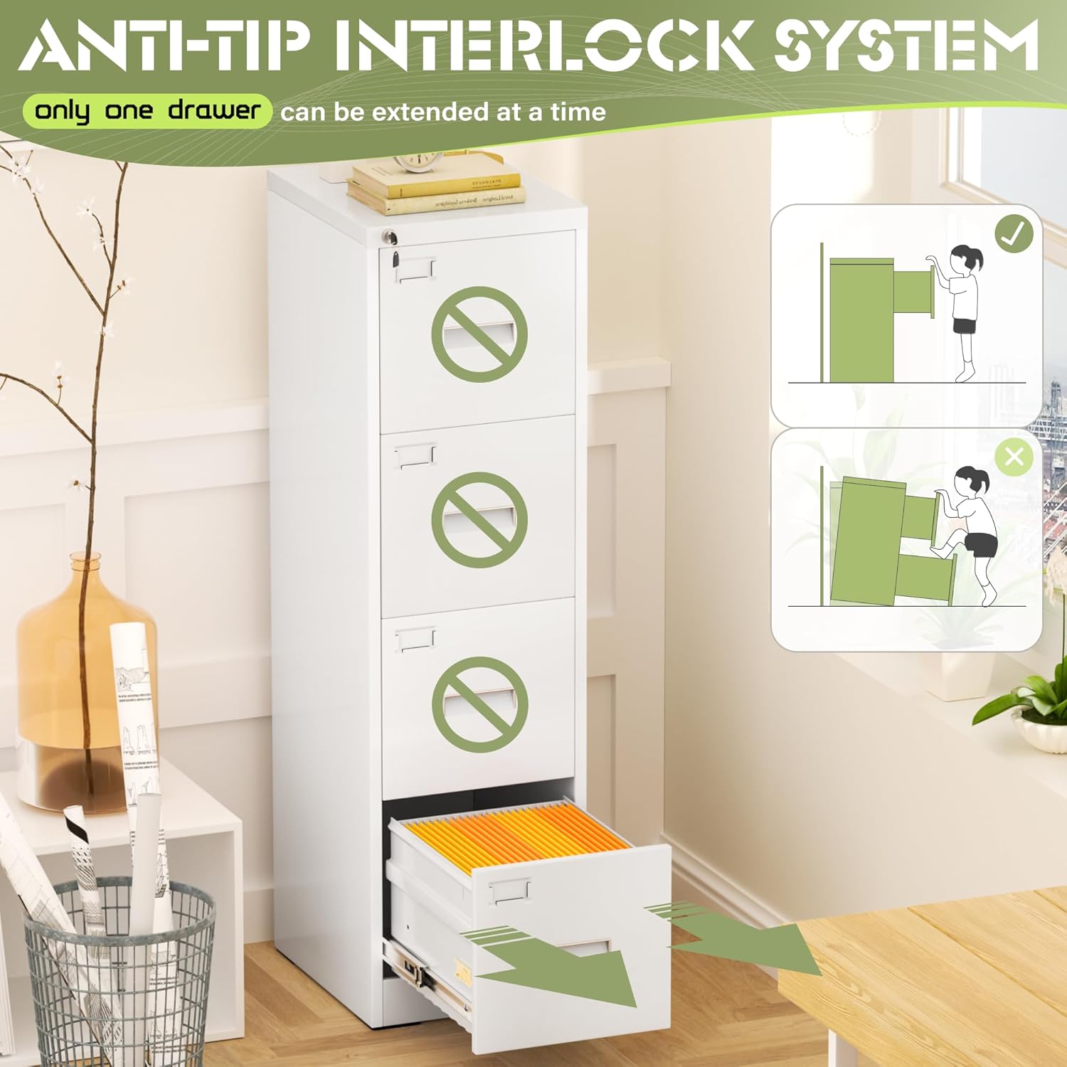 - 【High security】Four-drawer file cabinet with Lock is equipped with a built-in interlocking system to ensure drawer security. One locks with two keys ensures that your files are safe and easy to manage. The cabinet with drawers can be locked into four drawers at the same time with a lock, which is smooth and easy to operate.