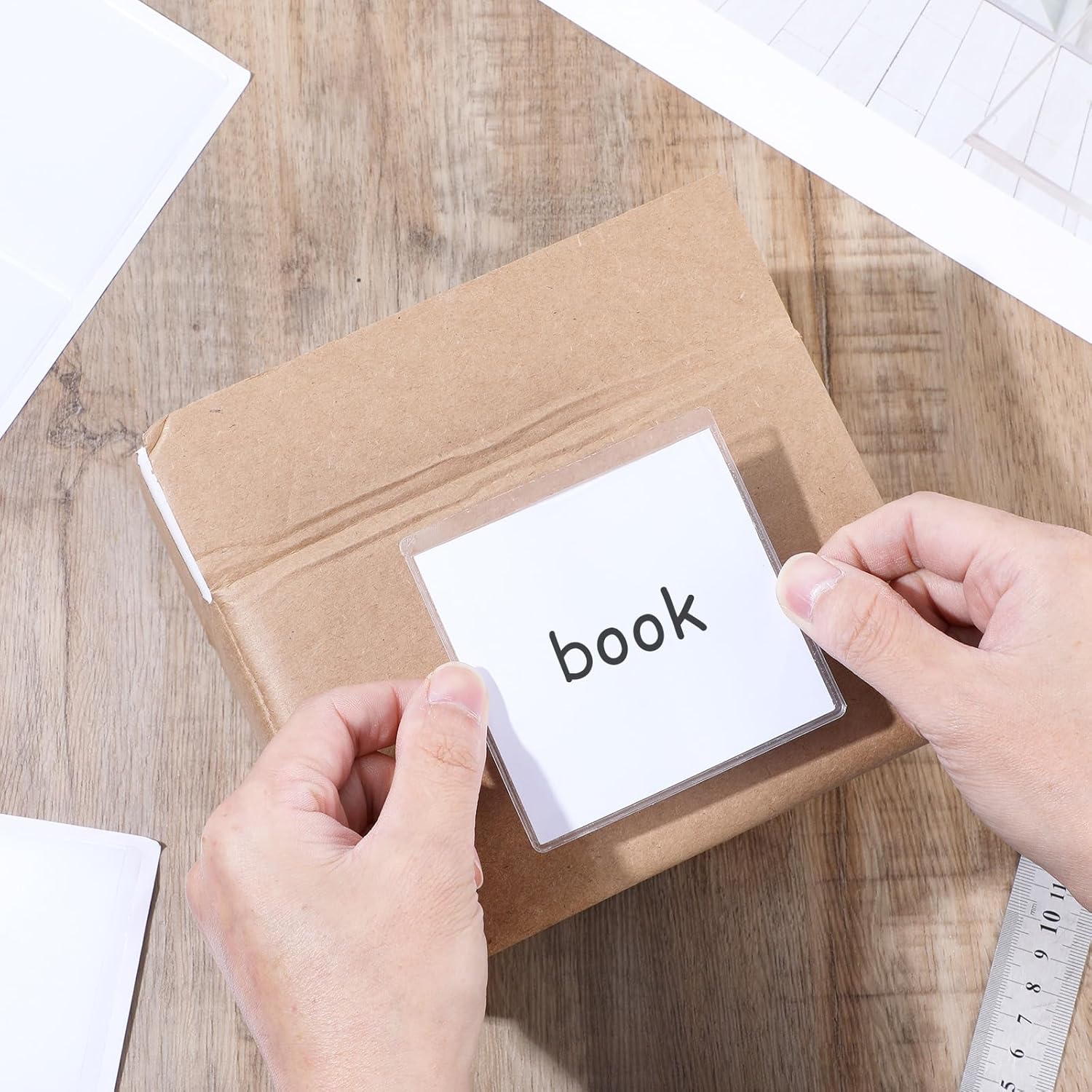 100 Pcs Self Adhesive Label Holder, Clear PVC Index Card Pockets, 3.5 x 3.5 inches