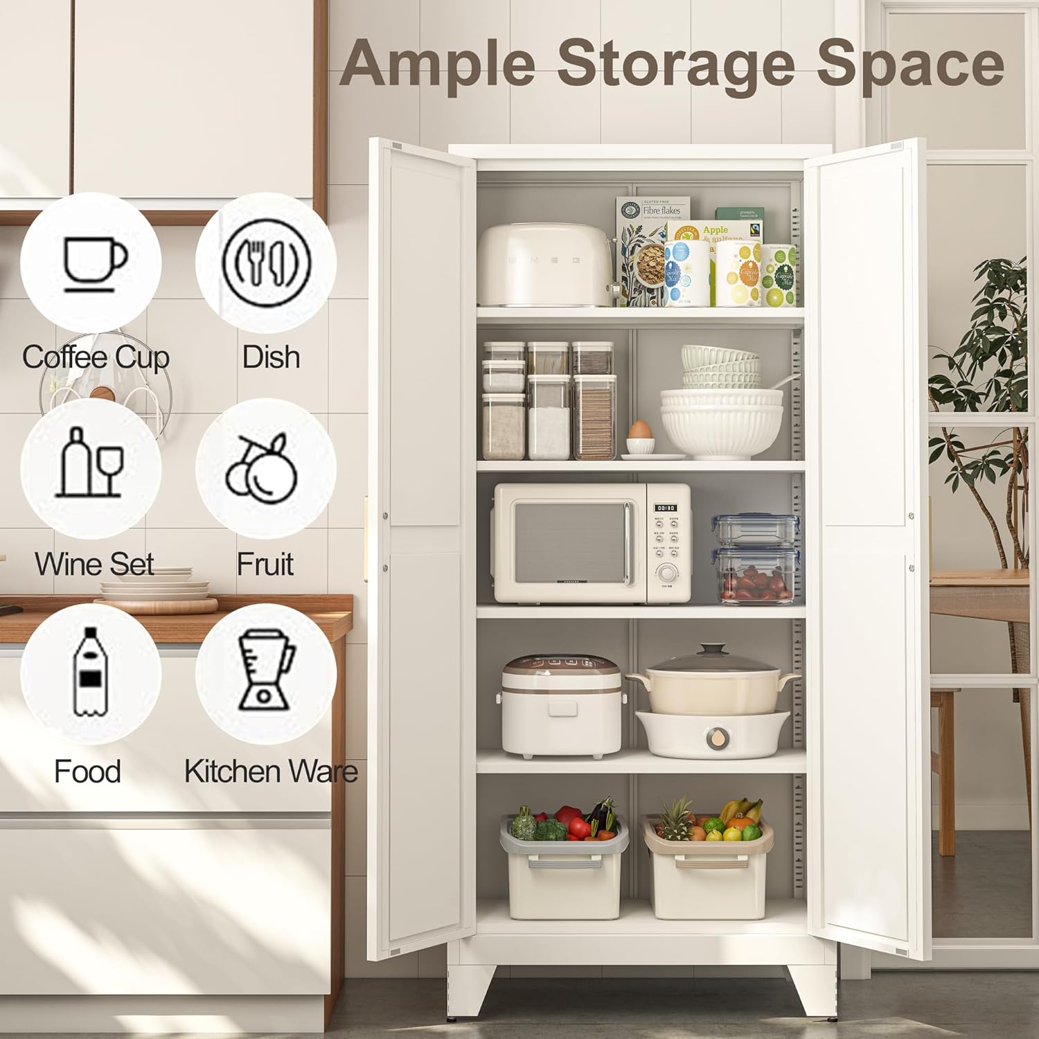 71H Tall Metal Storage Cabinet with 2 Doors and 5 Shelves,Farmhouse Storage Cabinet with Barn Doors,Pantry Storage for Home,Office,Dining Room,Kitchen,Bathroom(White)