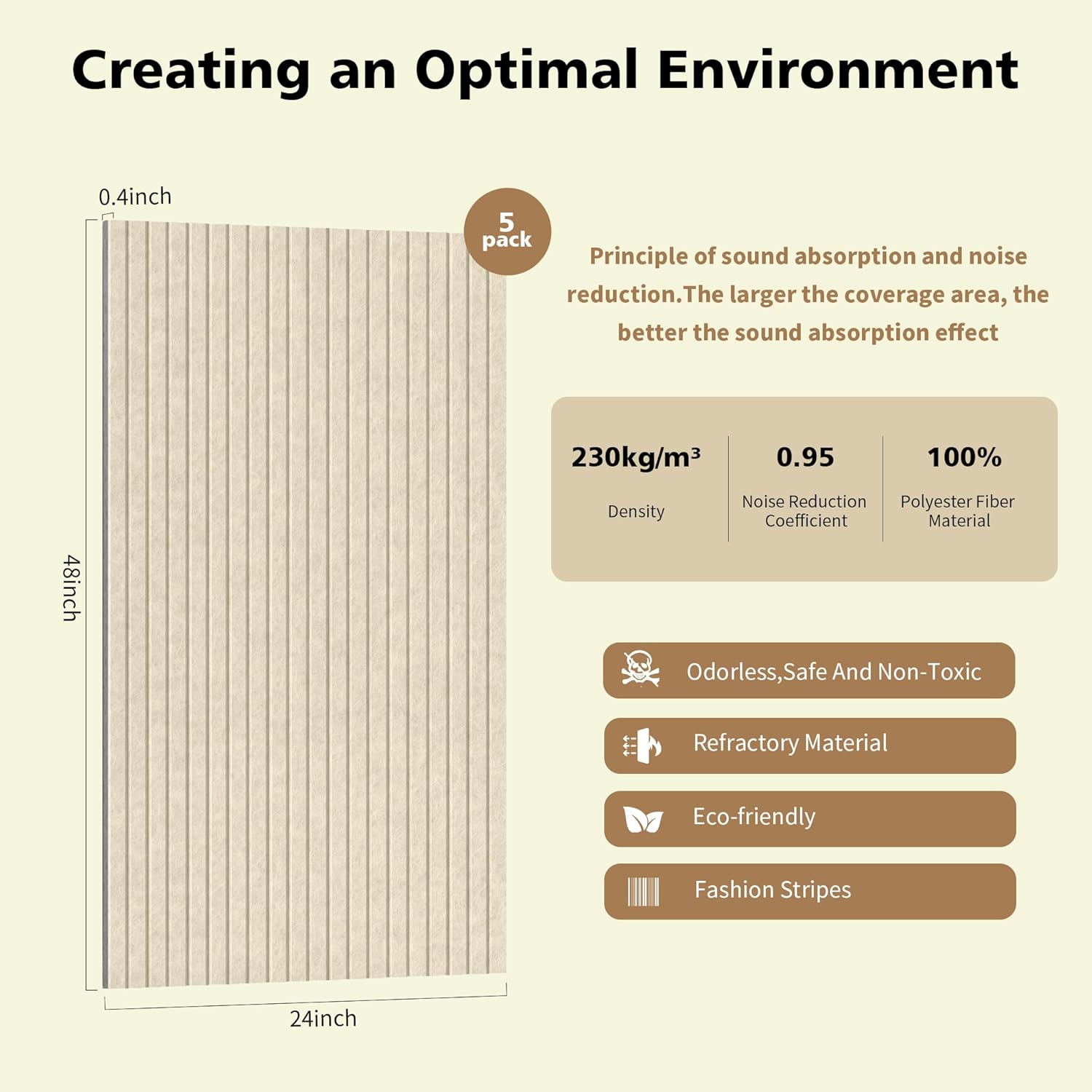 Acoustic Panels,5 Pack Sound Panels Noise Reducing for Walls,48"x24"x0.4" Soundproof Wall Panels,High-Density Acoustic Wall Panels,Decorative Sound Dampening Panels,Camel