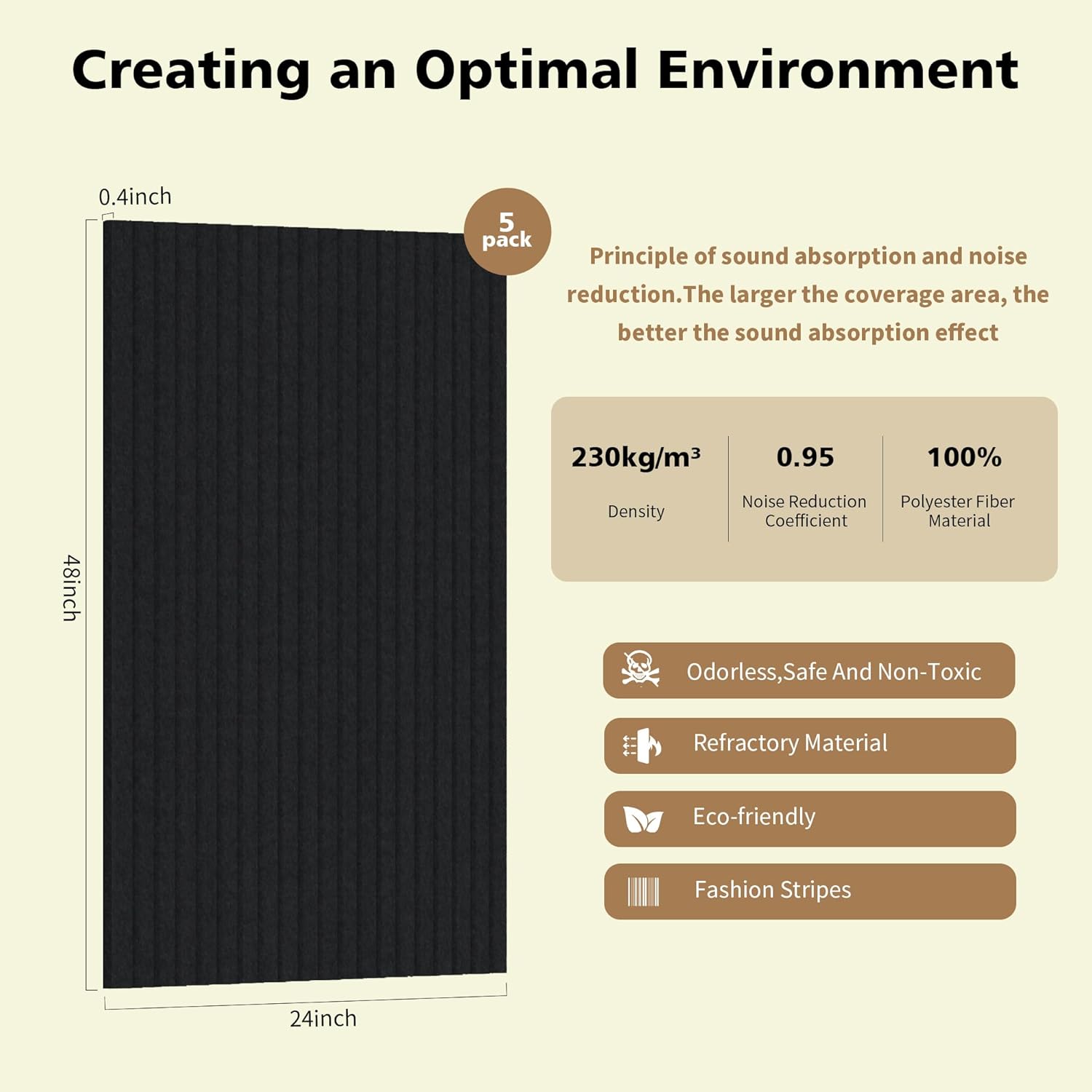 Acoustic Panels,5 Pack Sound Panels Noise Reducing for Walls,48"x24"x0.4" Soundproof Wall Panels,High-Density Acoustic Wall Panels,Decorative Wall Sound Absorbing Panel,Black