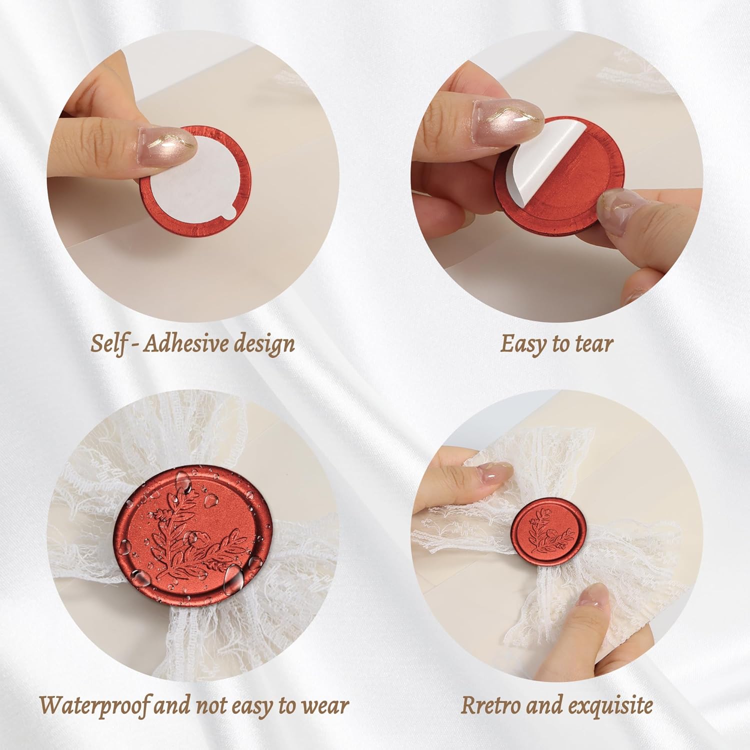 - SELF-ADHESIVE CONVENIENCE: these wax seals come with a strong adhesive backing for quick and easy application to any surface. Simply peel and stick. Quick and easy to use, saving you valuable envelope sealing time.