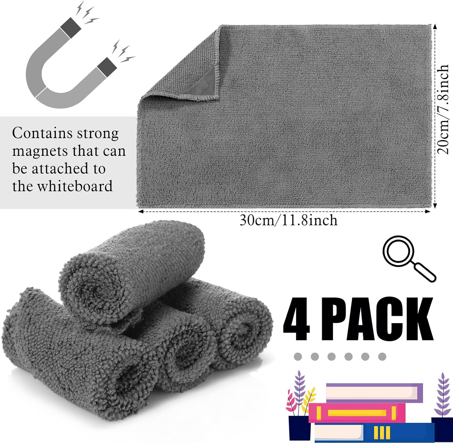 - Product Content: when you purchase this product, you will receive 4 pieces 7.8 x 11.8 inches gray magnetic whiteboard cleaning cloths, enough to meet your whiteboard cleaning needs