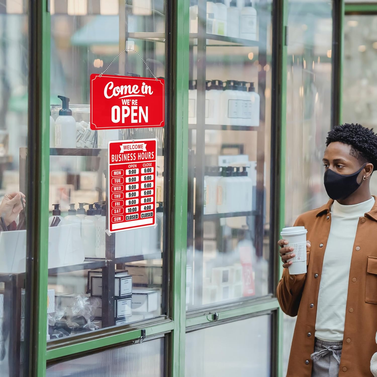- Well Designed - This opening closed time signs are thoughtfully designed, bright color, perfect size, which can attract customers' attention; this multi-functional store set is ideal for restaurants, bar, store, hotels, offices, coffee shops, barbershop, spa, pharmacies, bakeries, grocery stores, clubs, beauty salons, nail salons, boutiques and basically any business