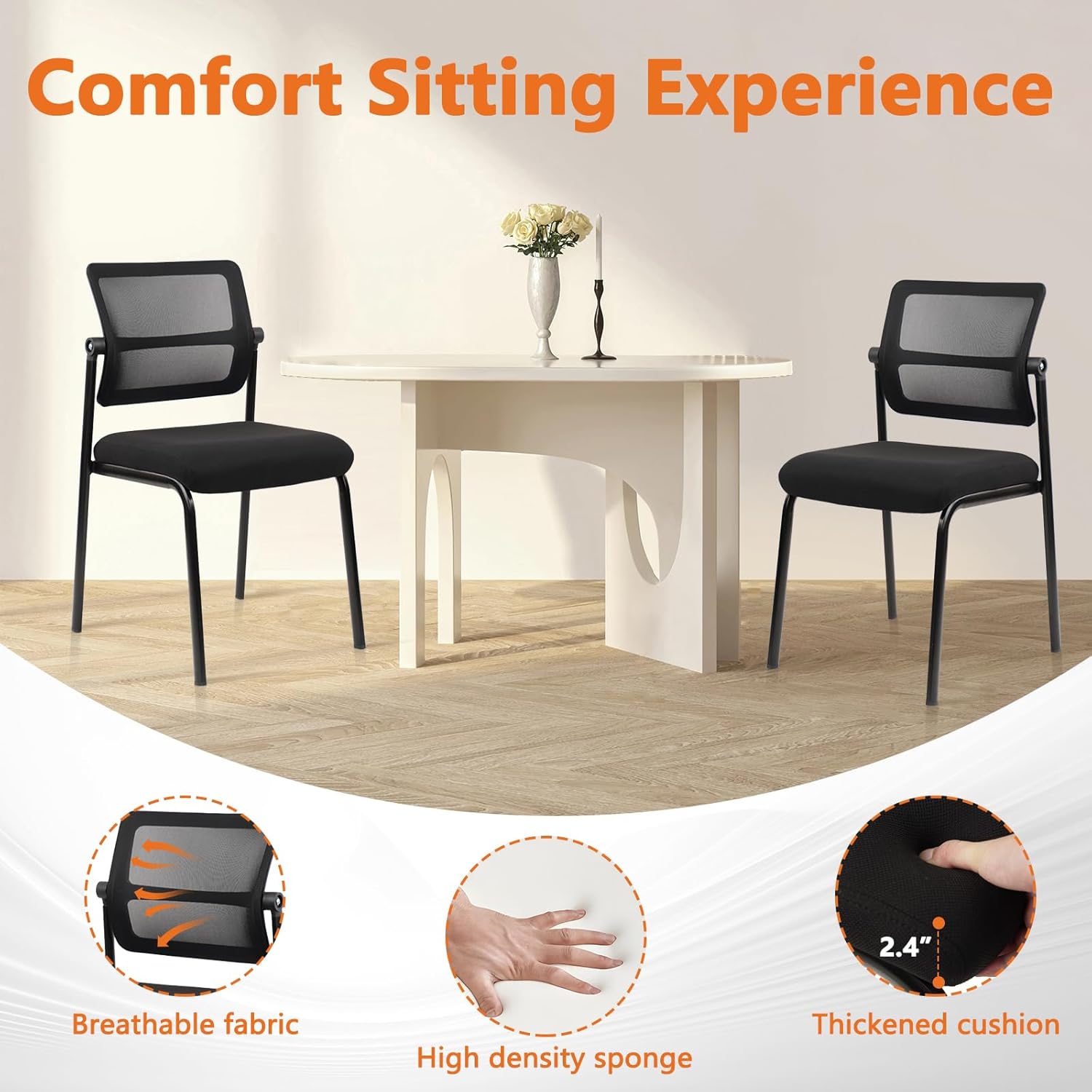 CLATINA Stacking Armless Office Waiting Room Chair with Adjustable Backrest, Stackable Mesh Guest Reception Desk Chairs with Ergonomic Lumbar Support for Conference Lobby Side School, Black, 4 Pack