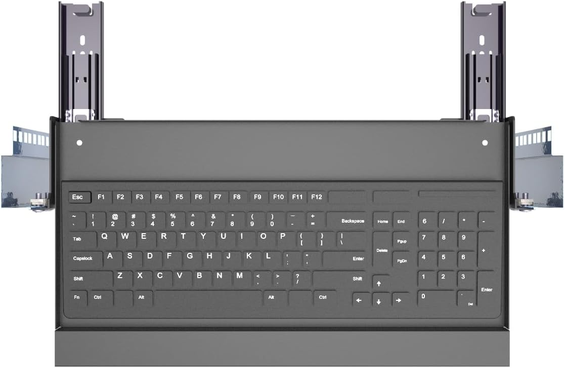 - Sturdy Structure: The Additional Horizontal Bar between the Slides Prevent the Keyboard Shelf from Shaking When Sliding Out. Durable Metal and Sturdy Structure Ensure Long-lasting Performance and Stability.