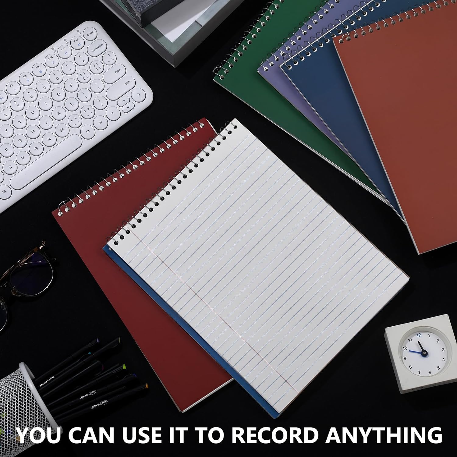 6 Pack 8.5 x 11'' Top Bound Office Steno Book Wide Ruled Double Sided Spiral Notebooks Reliable White Paper 70 Sheets/Pad Pastel Colors Covers for Writing School Notes(Vintage Color)