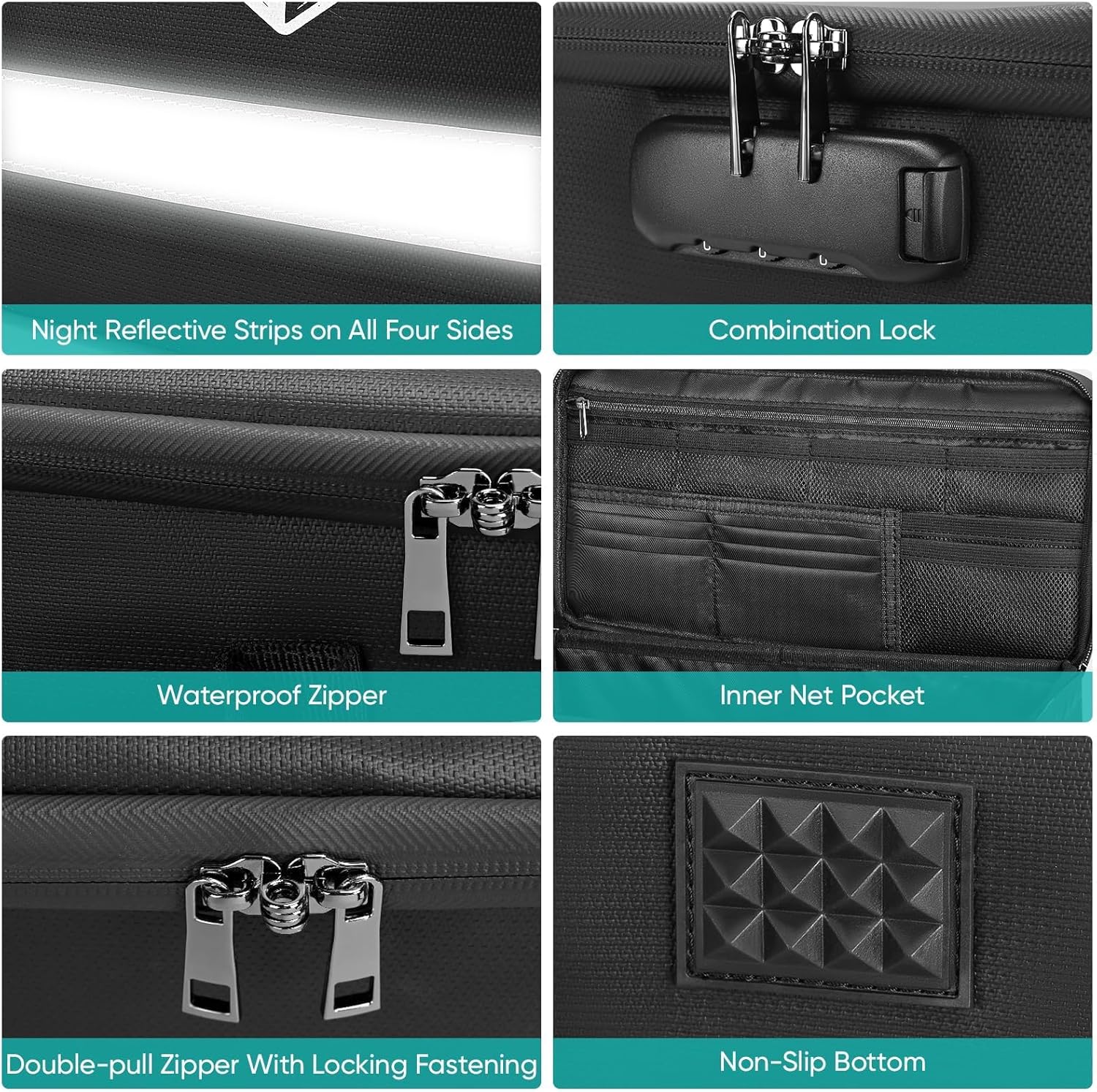 - Unique Design: The large and medium-sized fireproof boxes feature sliding rails for easy document adjustment, PVC anti-slip pads for stability, and reflective strips for visibility in low light; The smaller fireproof bag includes a reinforced handle and adjustable shoulder strap for easy carrying