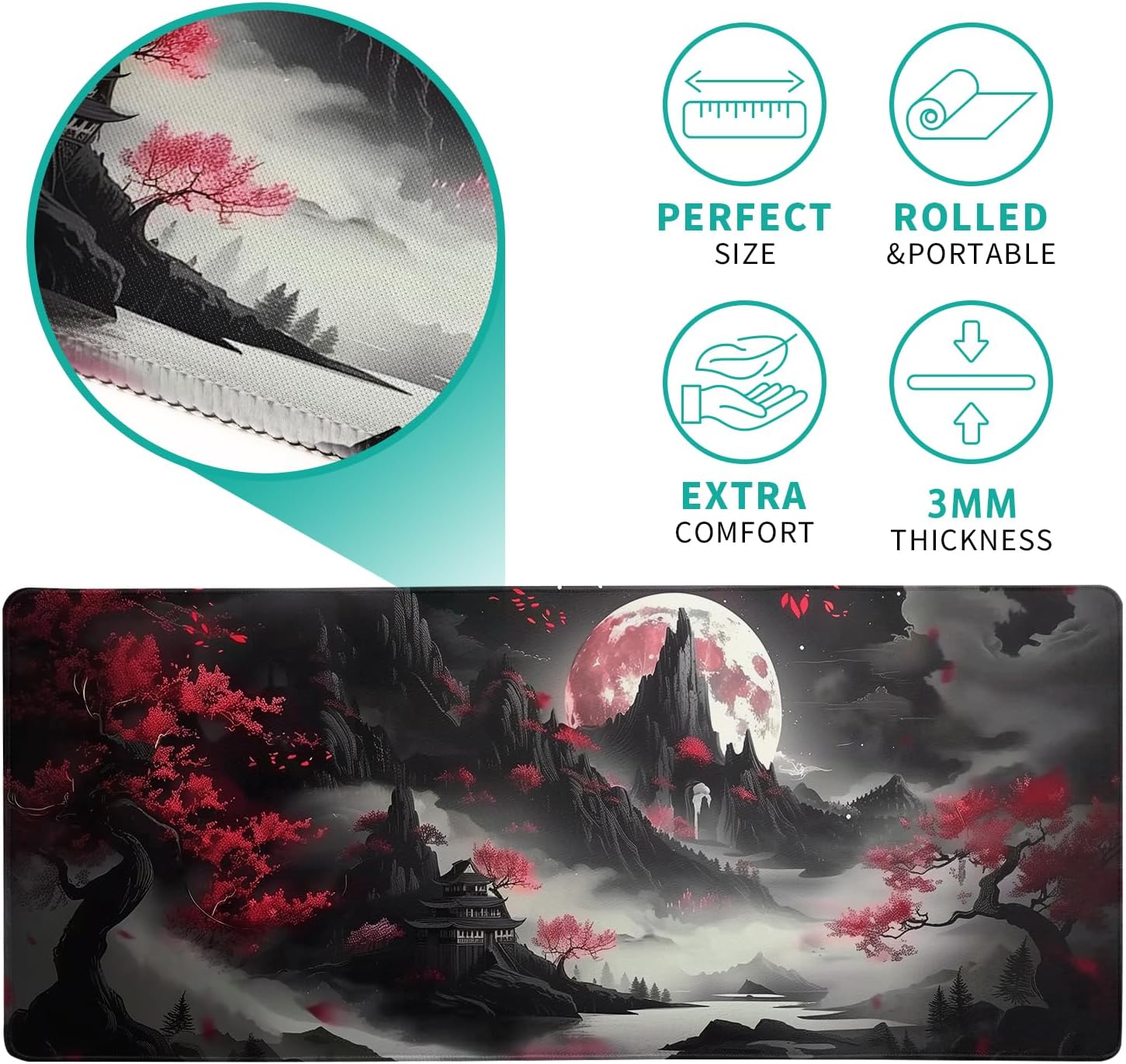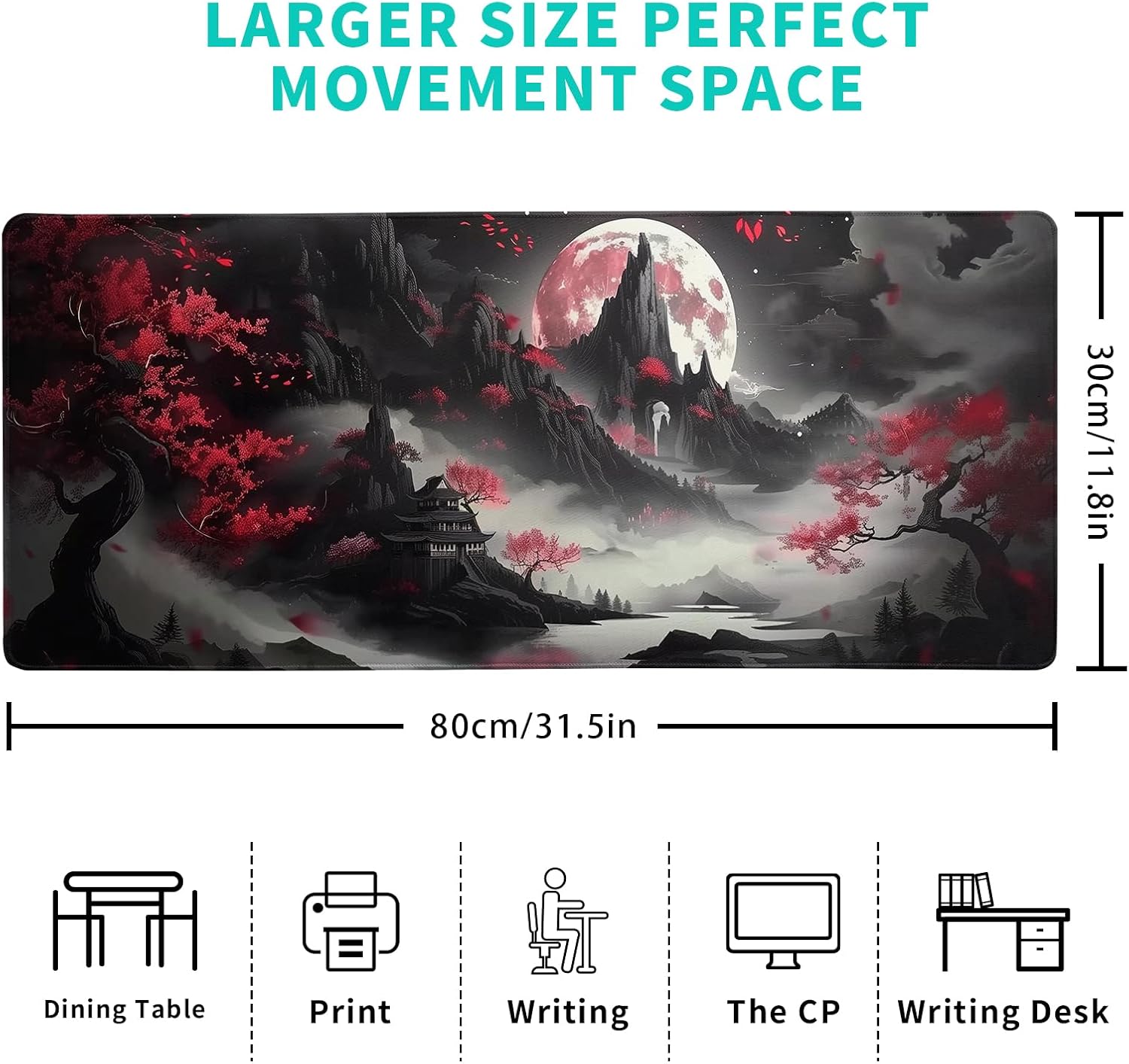 - Extended Size: The Japanese Mouse Pad Is Large Enough, 11.8''X 31.5'' ( 800mm X 300mm X 3mm), Will Fit Your Desktop Perfectly And Provide Perfect Movement Space, Offers Plenty Of Room For Gaming Or Office Works All While Protecting Your Desk, Applies To All Types Of Mouse Keyboards And More.