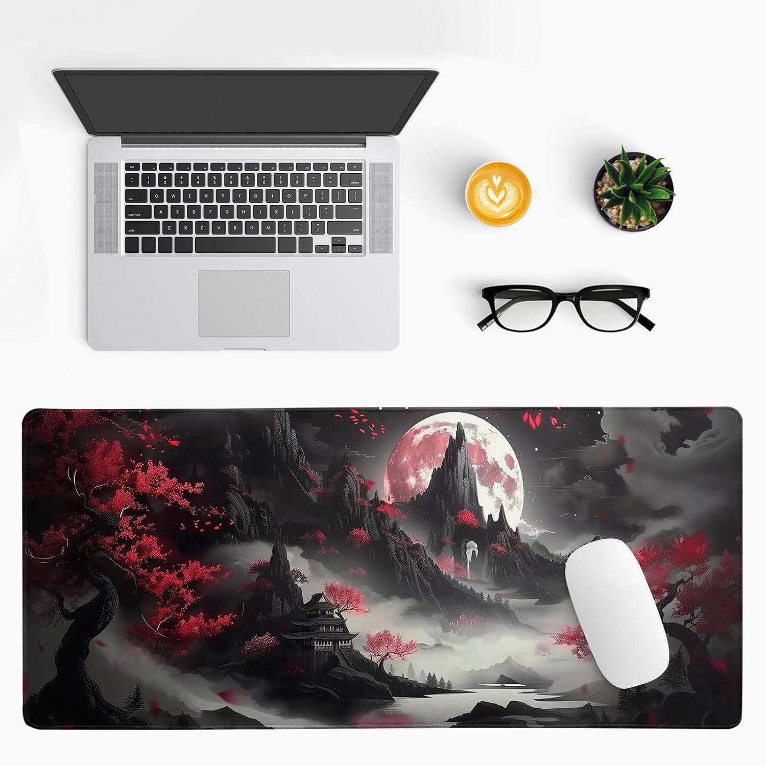 Japanese Desk Mat Red Full Moon Desk Pad Black Riverside Large Mouse Pad Gaming Mousepad Extended XL Keyboard Pad 31.5 x 11.8 in Laptop Computer Mouse Keyboard Mat for Office Desk Decor