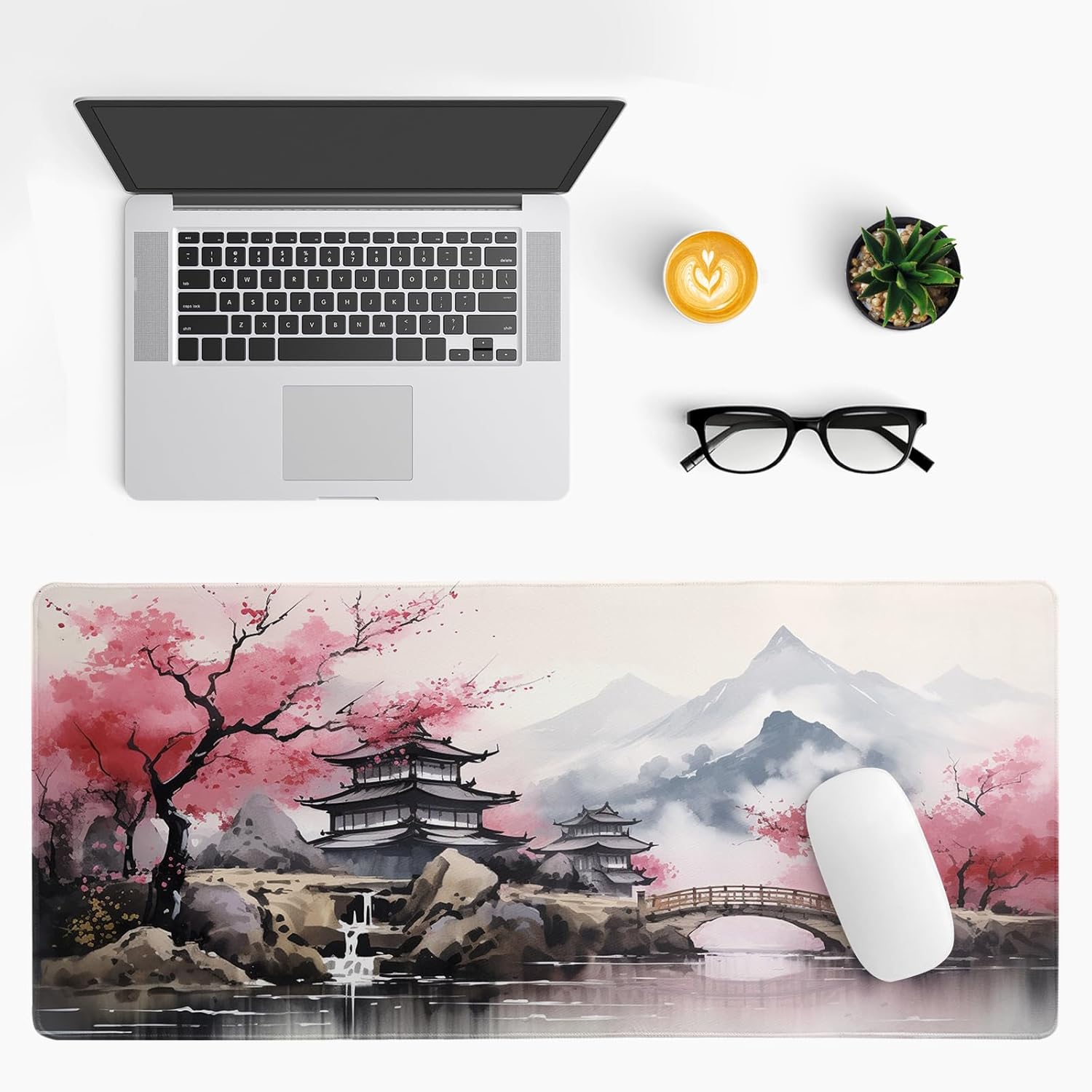 Desk Mat, Desk Matt for Desktop, Watercolor Desk Pad Mat, XL Large Mouse Pad for Desk, Anti-Slip Big Mousepad with Stitched Edges, Keyboard Pad Mouse Mat for Gaming Office (Cherry Blossom 3)