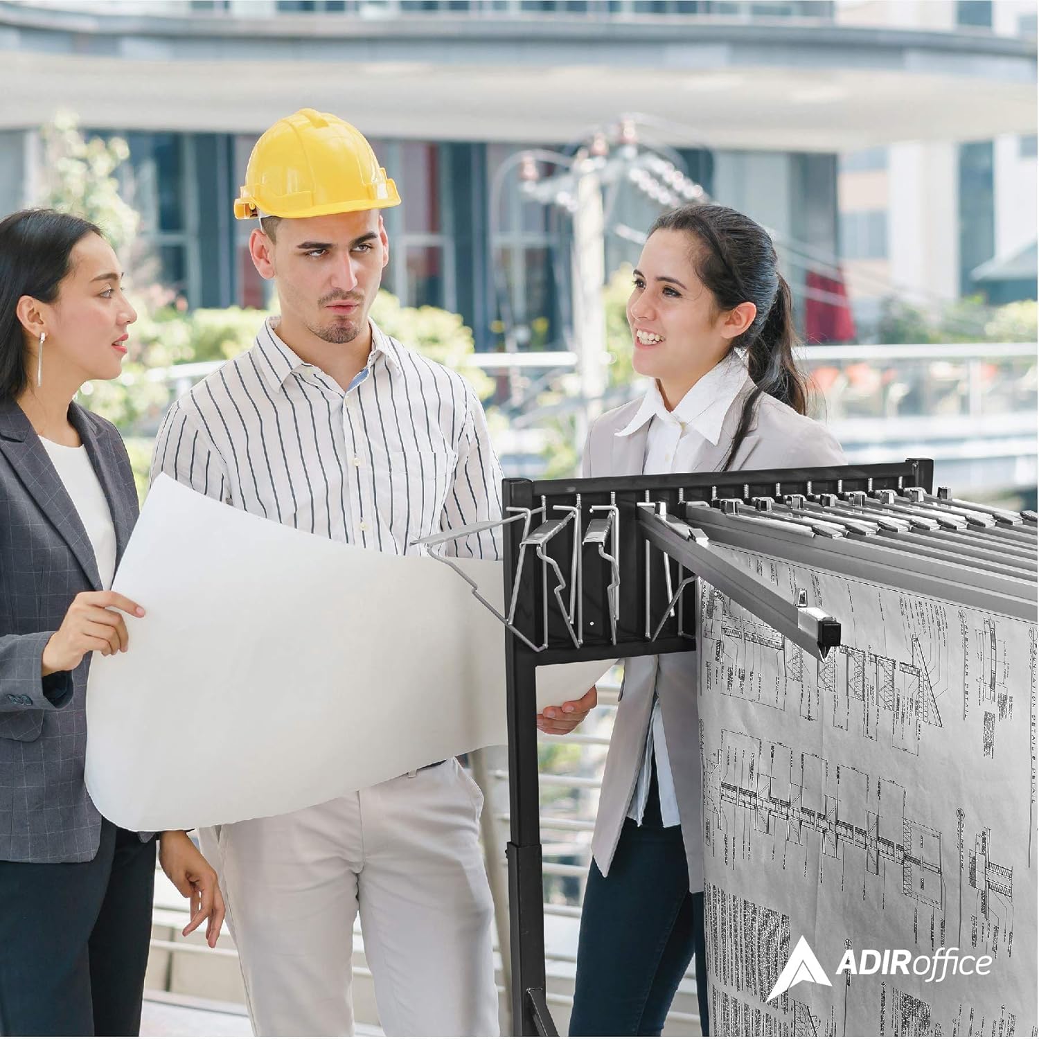 - Mobile and Adjustable Rack: The blueprint rack rolls smoothly on four casters, with front brakes for stability. Height and depth adjustments accommodate different file sizes, making it versatile for various office or jobsite needs.